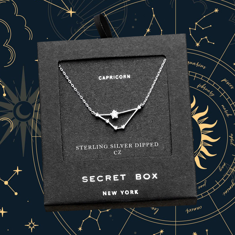 Secret Box _ Sterling Silver Dipped CZ Capricorn Zodiac Sign Pendant Necklace