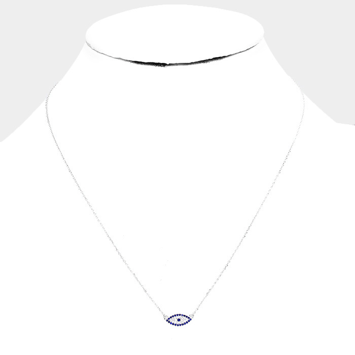 SECRET BOX_Sterling Silver Dipped CZ Evil Eye Pendant Necklace