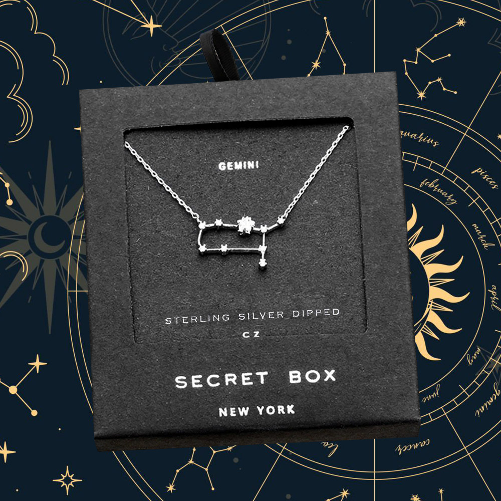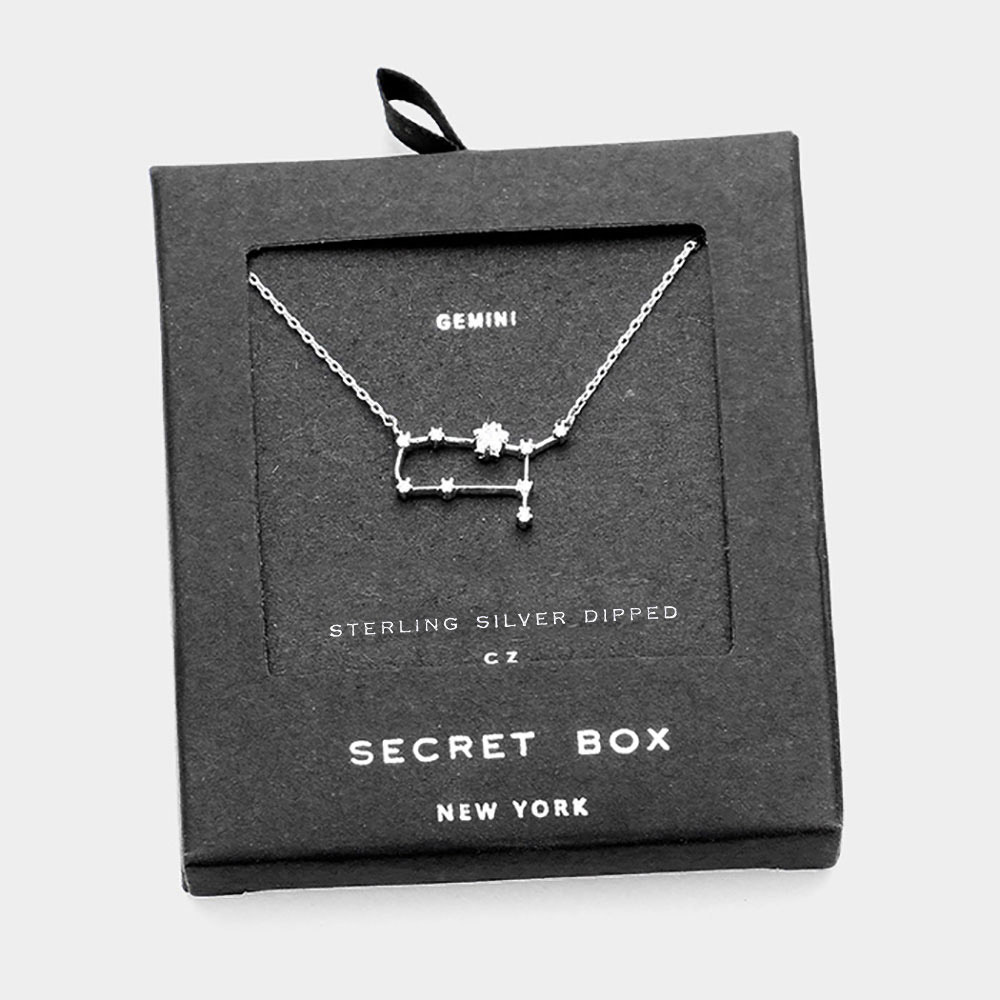 Secret Box _ Sterling Silver Dipped CZ Gemini Zodiac Sign Pendant Necklace