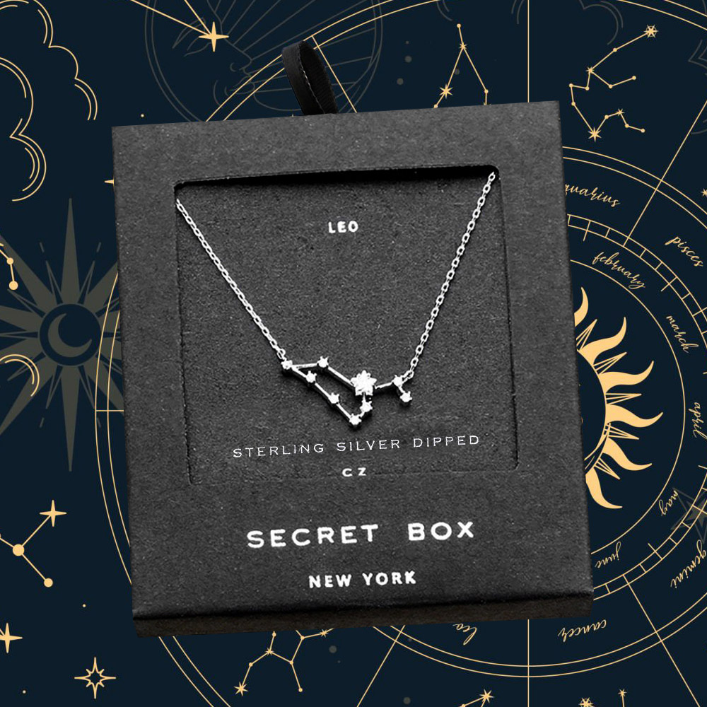 Details • Necklace Size : 16" + 2" L • Pendant Size : 0.8" X 0.4" • Zodiac Sign - Leo (July 23 - August 22) • Sterling silver dipped Leo constellation necklace with sparkling CZ accents. Elegant zodiac piece in premium Secret Box packaging—perfect for gifting or personal wear. • Lead and Nickel Compliant • CZ Cubic Zirconia • Sterling Silver Dipped