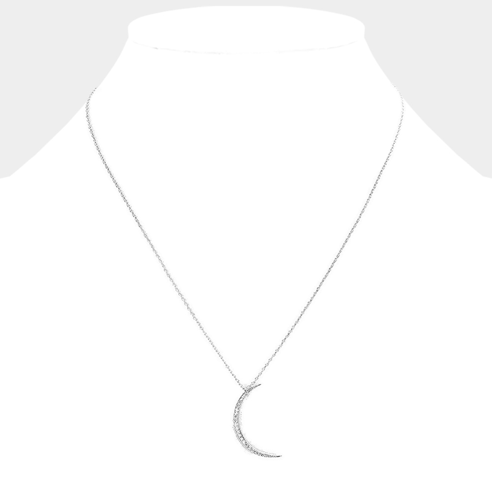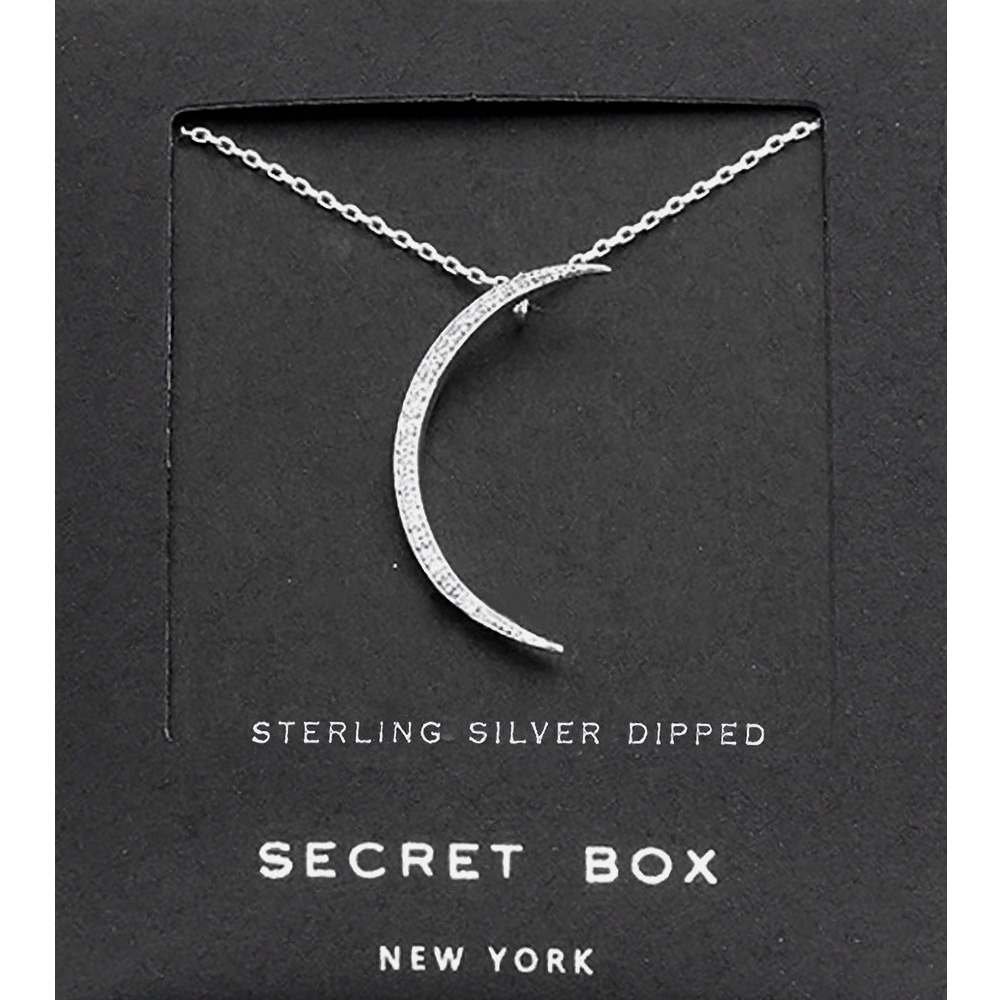Secret Box _ Sterling Silver Dipped CZ Moon Pendant Necklace