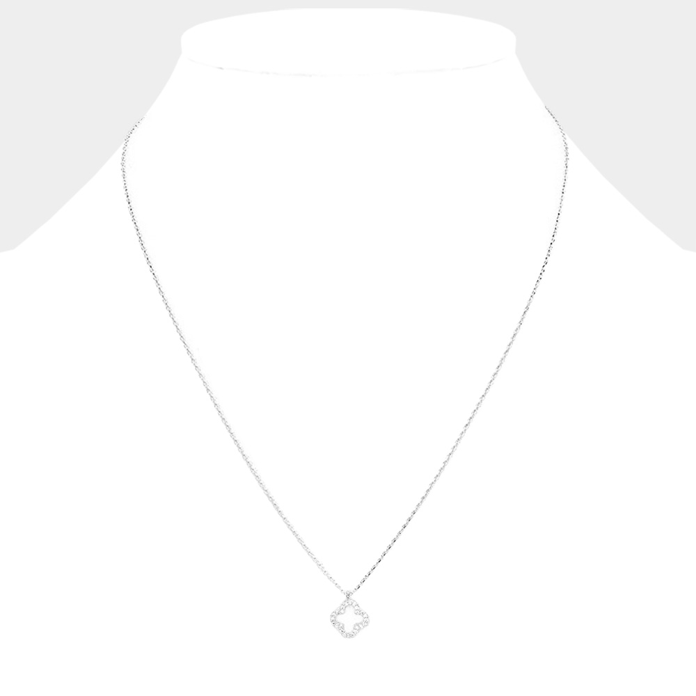 Details • Necklace Size : 17" + 2" L • Decor Size : 0.4" X 0.4" • Delicate necklace featuring a small clover-shaped pendant accented with sparkling CZ stones for a refined, minimalist look. Perfect for everyday wear, gifting, or layering with other pieces to add a touch of charm and elegance. • CZ Cubic Zirconia • Sterling Silver Dipped