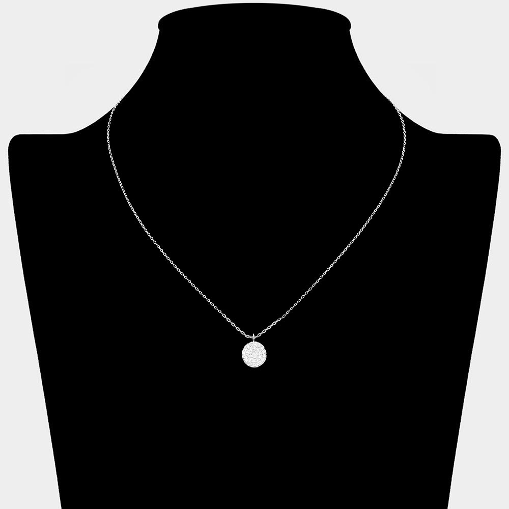 Details • Necklace Size : 16.5" + 2" L • Pendant Size : 0.3" X 0.3" • Elegant disc pendant necklace featuring a sparkling cz stone-accented charm on a delicate chain. Perfect for everyday wear or layering, offering a simple yet refined touch. A timeless accessory suitable for gifting or adding subtle shine to any look. • Made In Korea • CZ Cubic Zirconia • Sterling Silver Dipped