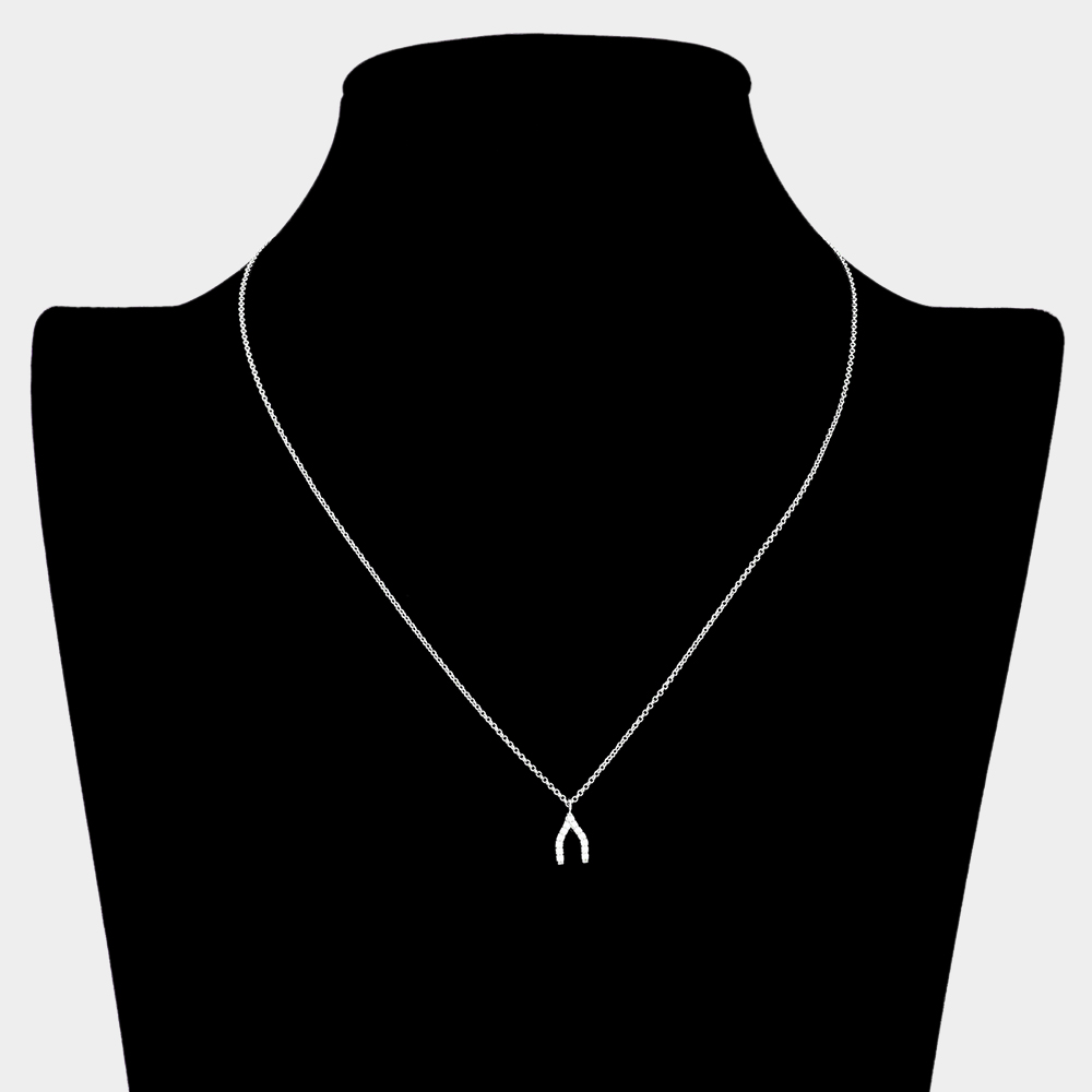 Details • Necklace Size : 16.5" + 2" L • Pendant Size : 0.25" X 0.5" • Make every day a lucky one with this sterling silver dipped CZ wishbone necklace. Its sparkling cubic zirconia accents and graceful minimalist shape bring timeless charm, symbolizing hope and good fortune in a refined design perfect for layering or gifting. • CZ Cubic Zirconia • Sterling Silver Dipped