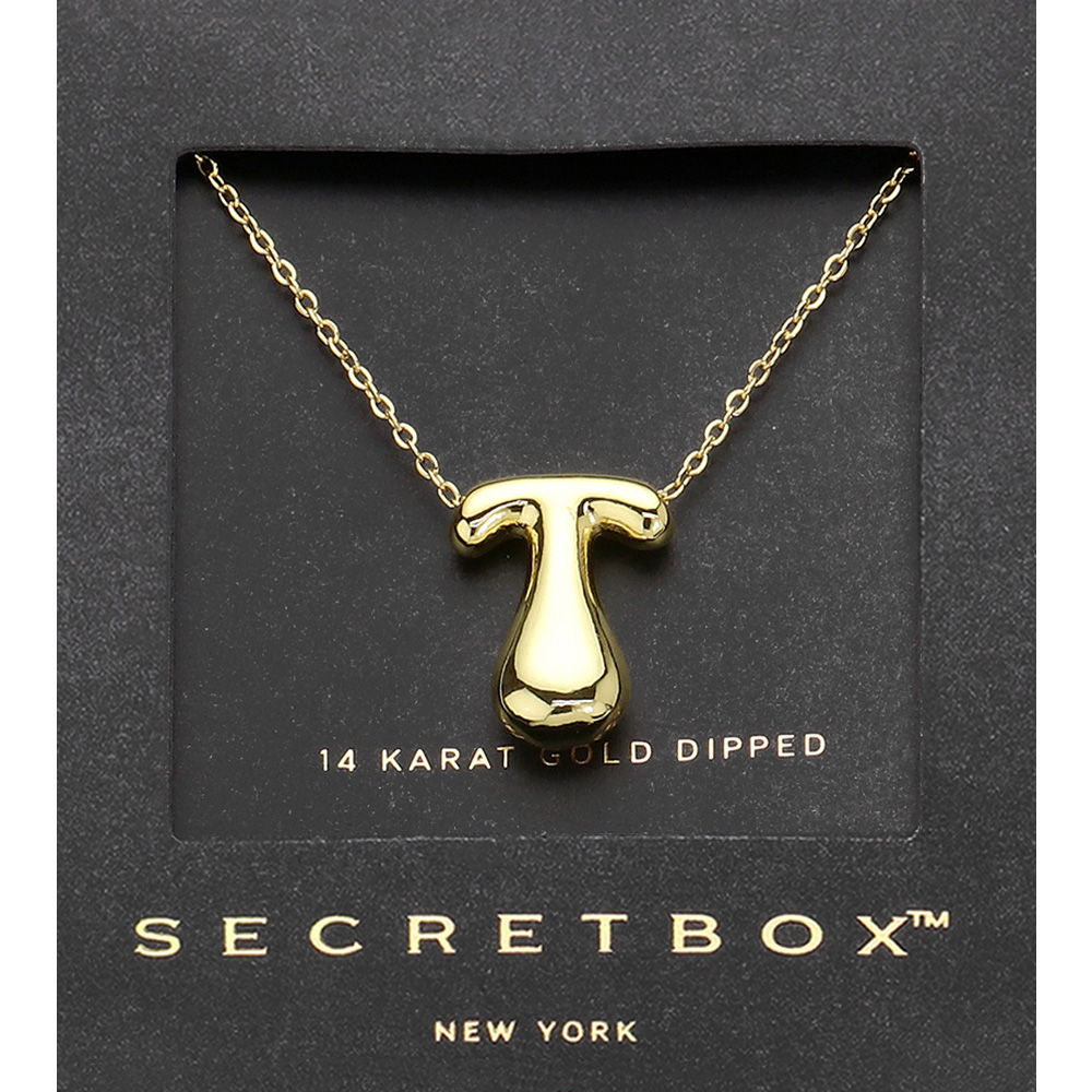 Details • Necklace Size : 15.5" + 2.25" L • Pendant Size : 0.75" L • Stylish pendant necklace featuring a bold, modern initial "T" design. Perfect for personalizing your look or gifting to someone special, adding a touch of elegance to any outfit. • Gold Dipped