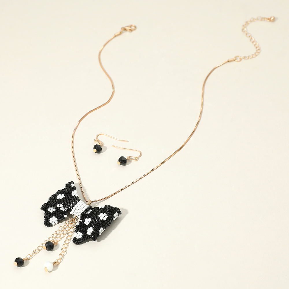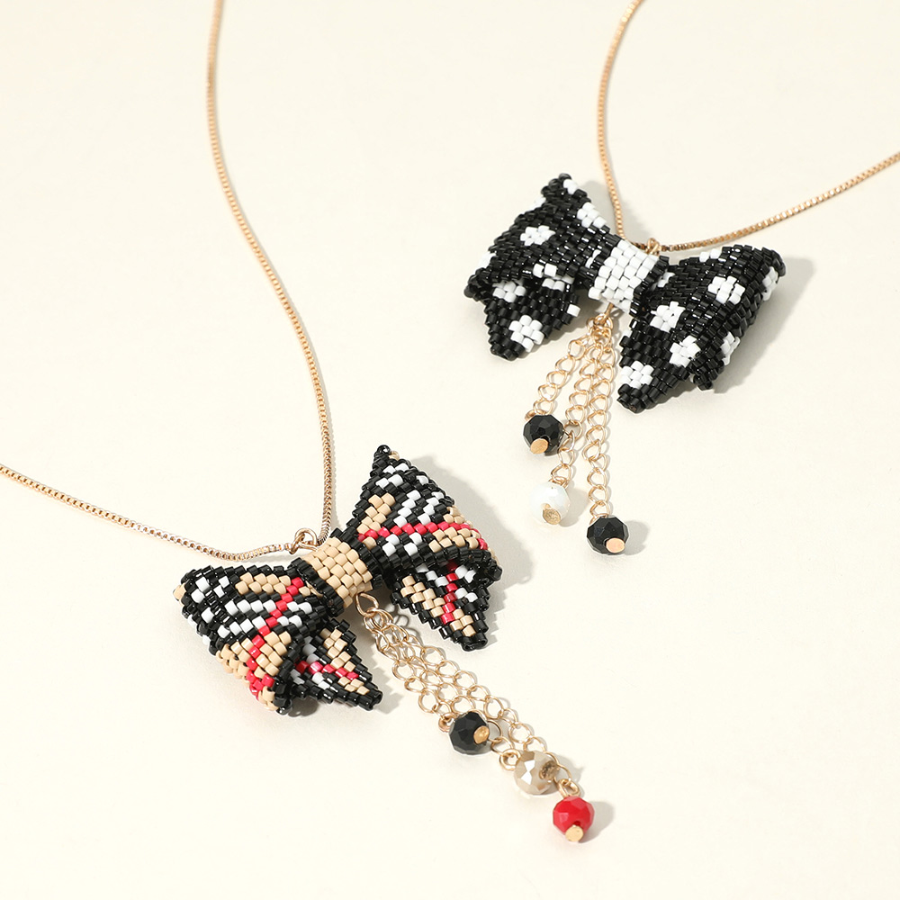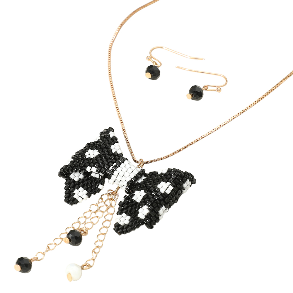 Faceted Beaded Brass Metal Wire Bow Pendant Necklace