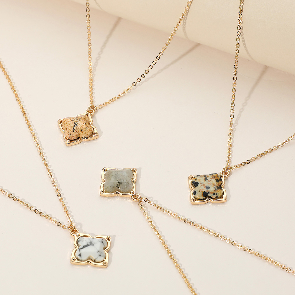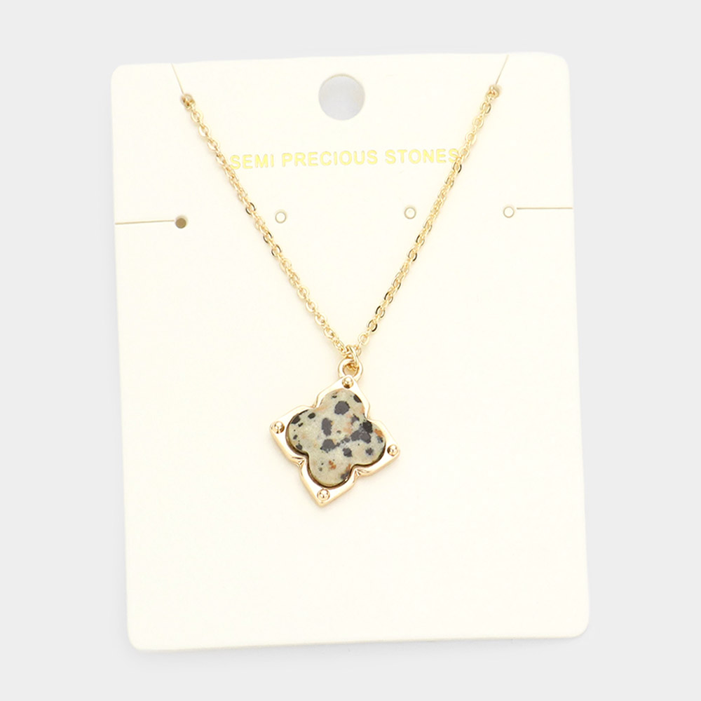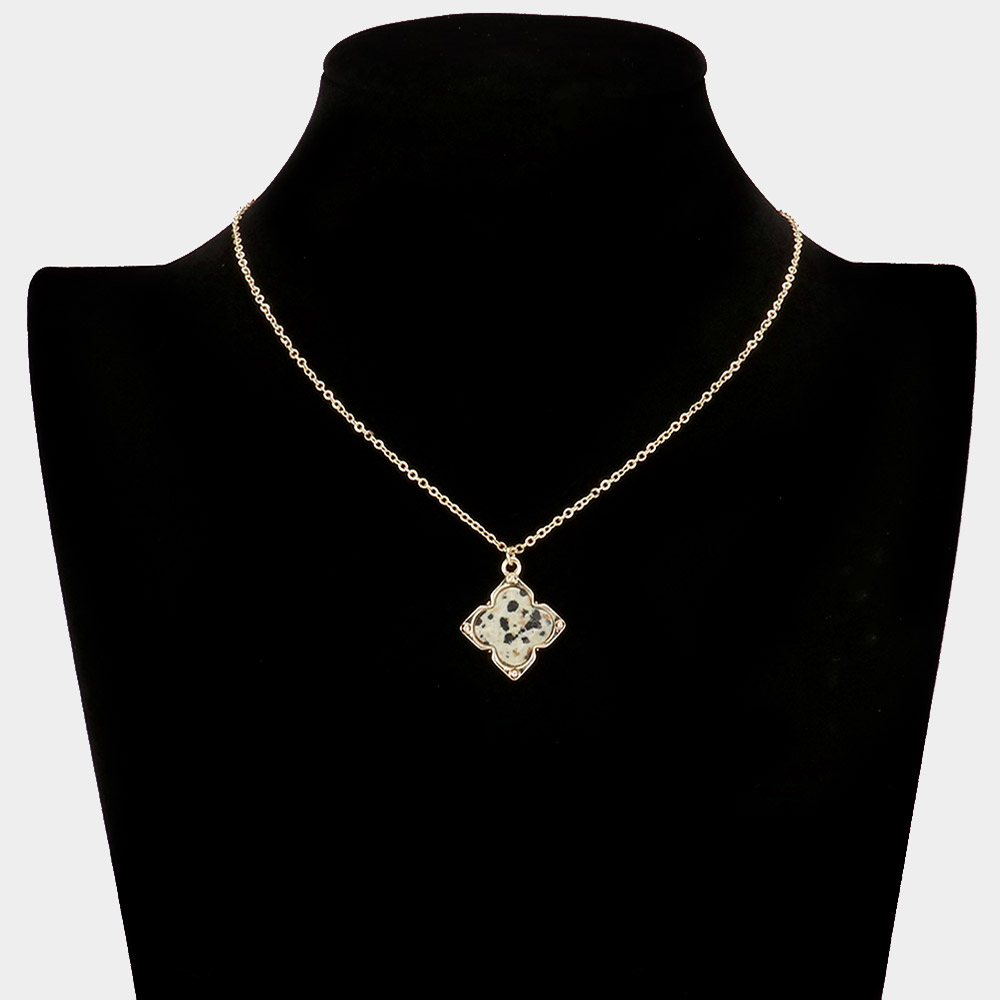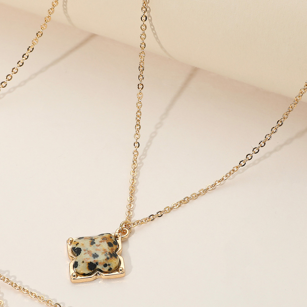 Enamel Rhinestone Embellished Quatrefoil Pendant Triple Layered Necklace