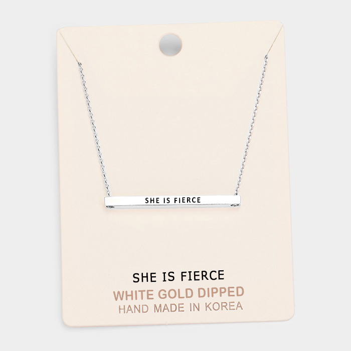 'She Is Fierce' Horizontal Metal Bar Pendant Necklace