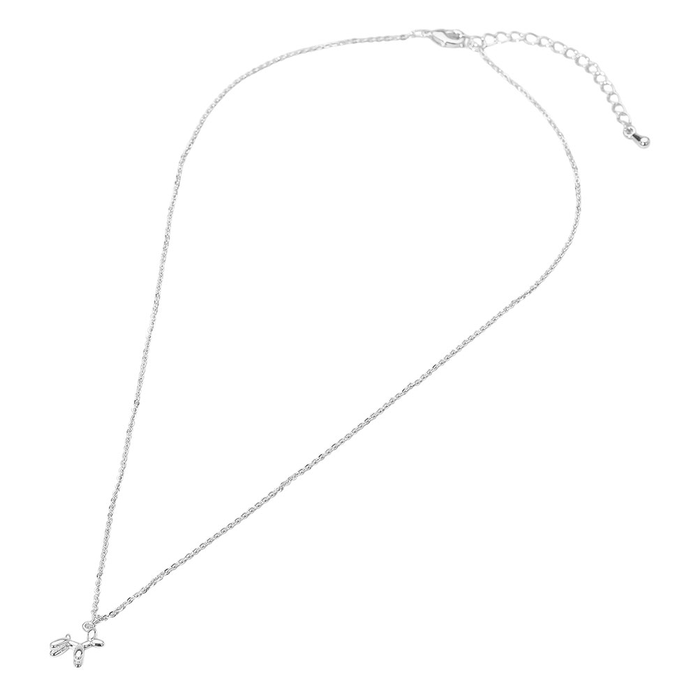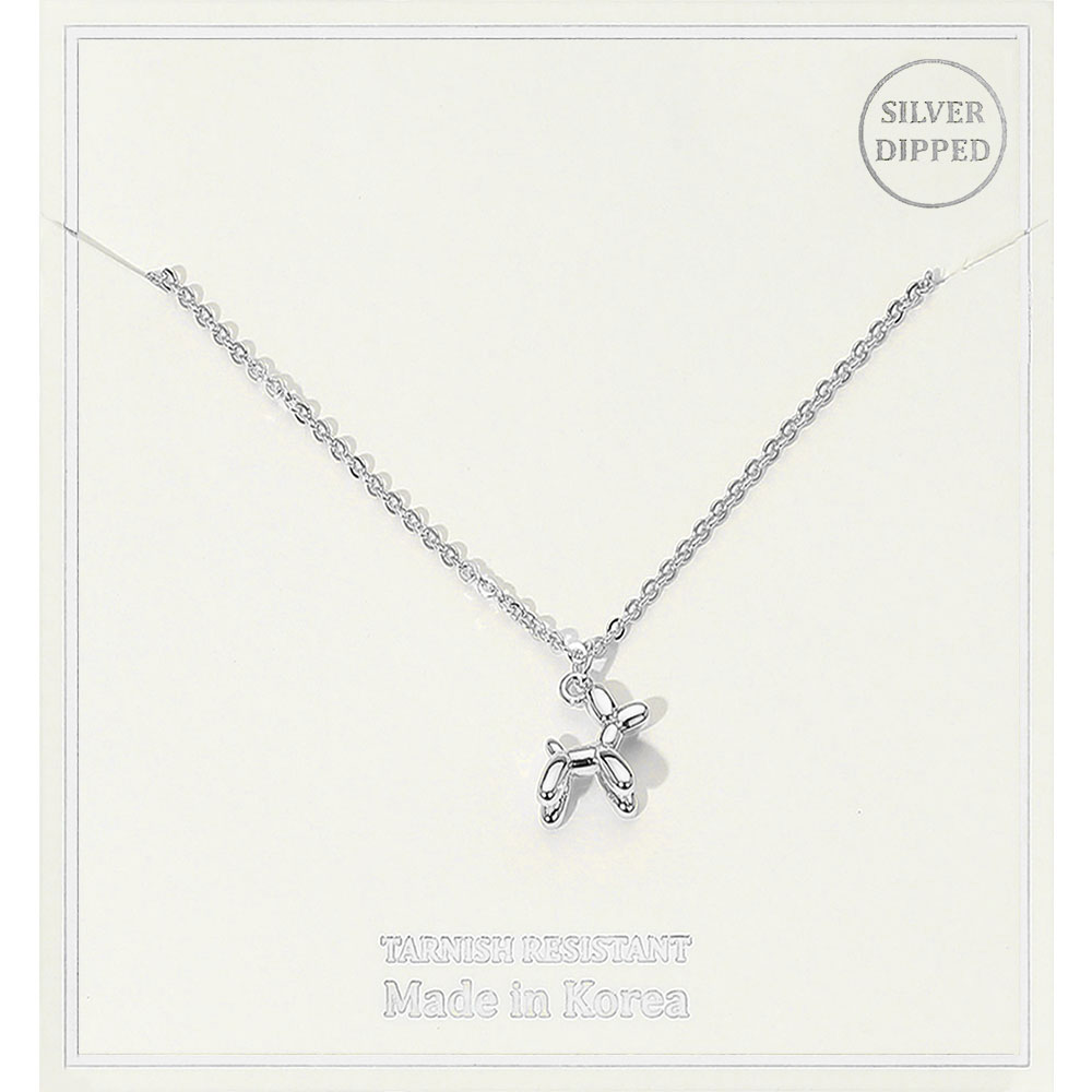 Details • Necklace Size : 16" + 2.5" L • Pendant Size : 0.3" X 0.5" • Tarnish resistant • Add a playful twist to your look with this necklace featuring a charming balloon dog pendant. Its minimalist design brings a fun yet chic statement, perfect for daily wear or gifting to dog lovers. • Lead and Nickel Compliant • Made In Korea • Sterling Silver Dipped