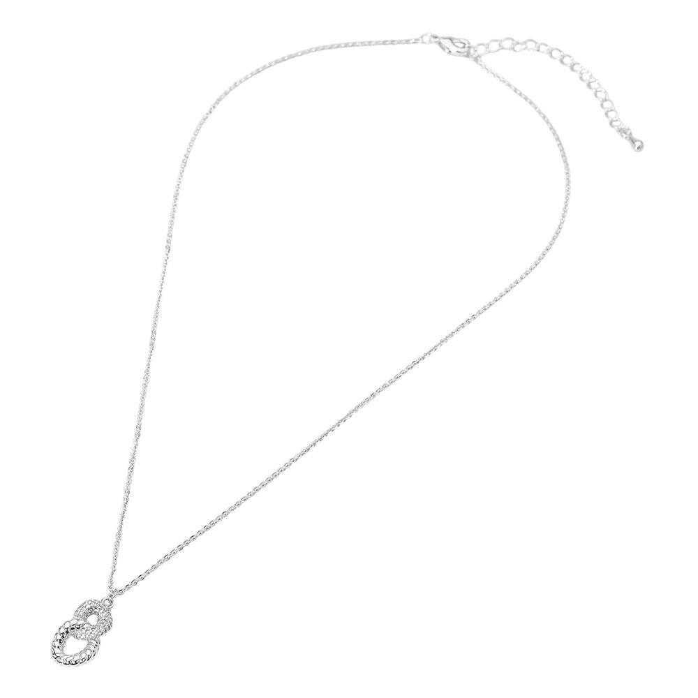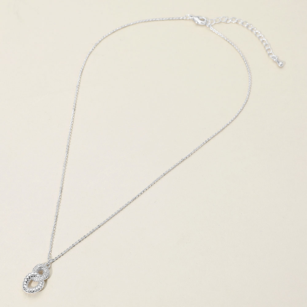 Details • Necklace Size : 16" + 2.5" L • Pendant Size : 0.3" X 0.8" • Tarnish resistant • Refined and stylish, this double loop pendant necklace features a sparkling cubic zirconia ring paired with a twisted link. An eye-catching piece perfect for elevating your look with subtle sophistication. • Lead and Nickel Compliant • Made In Korea • Sterling Silver Dipped