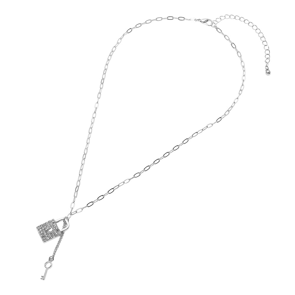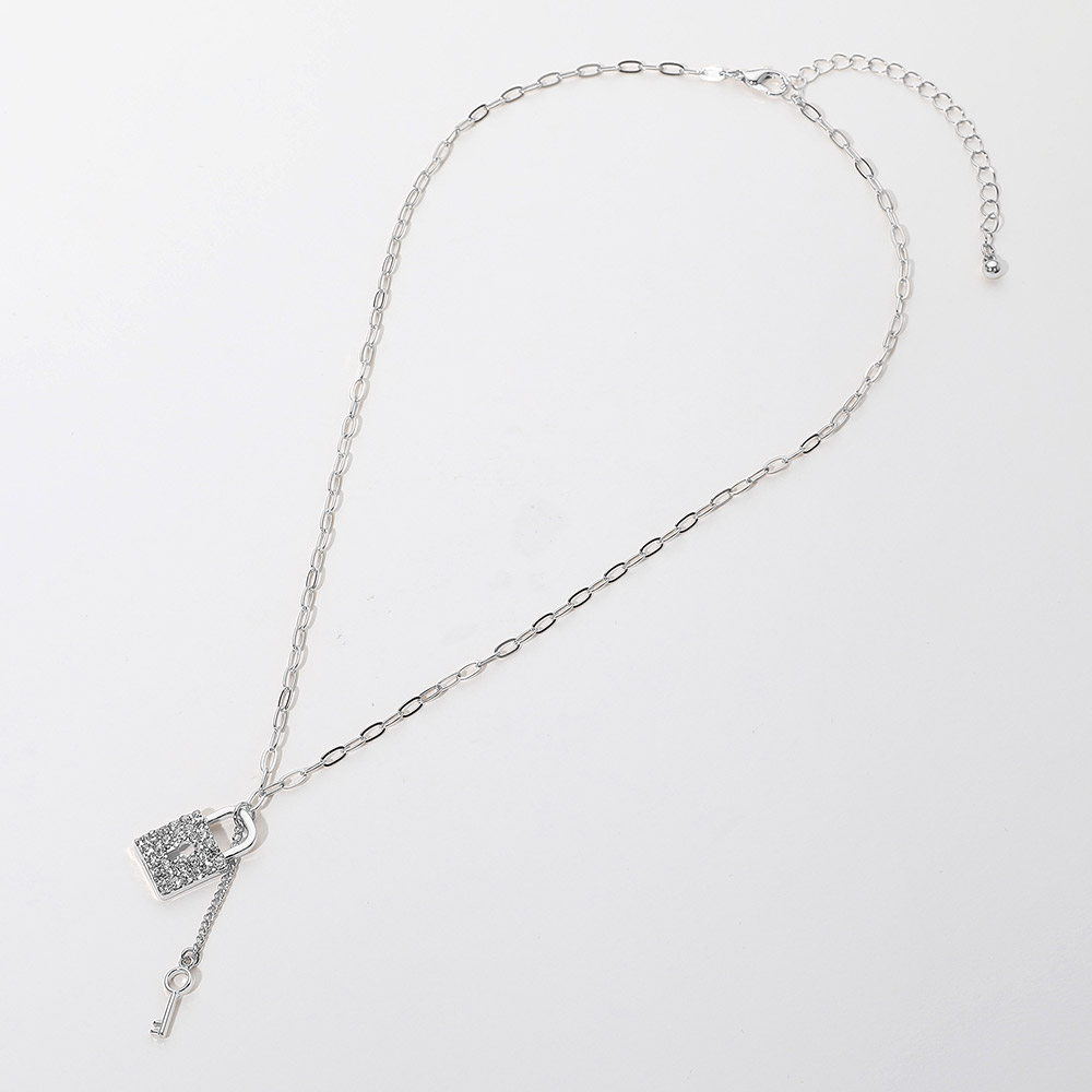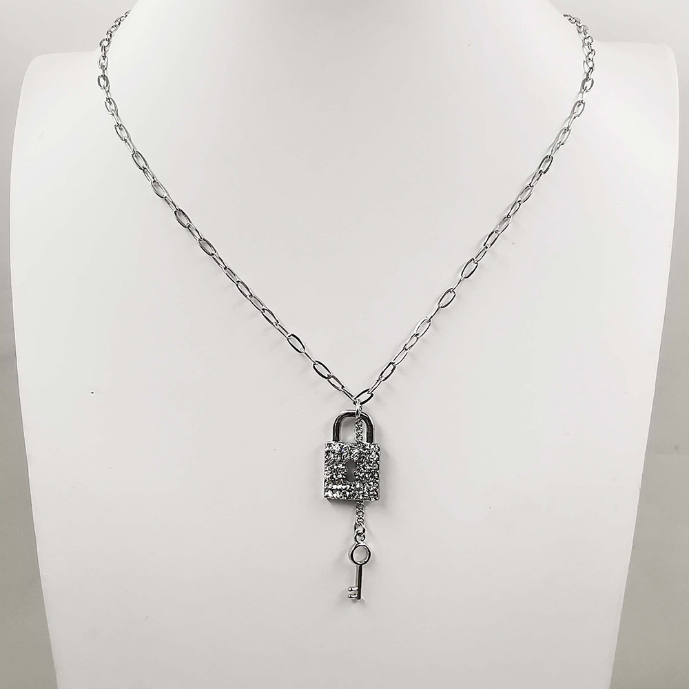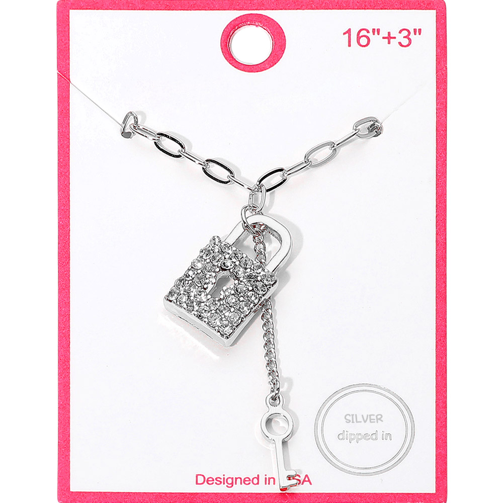 Details • Necklace Size : 16" + 3" L • Pendant Size : 0.5" X 1.75" • Stylish necklace featuring a shimmering lock and dangling key charm on a chic chain. Perfect accessory to elevate everyday outfits or gift someone special. Adjustable length for comfortable wear. • Lead and Nickel Compliant • Sterling Silver Dipped