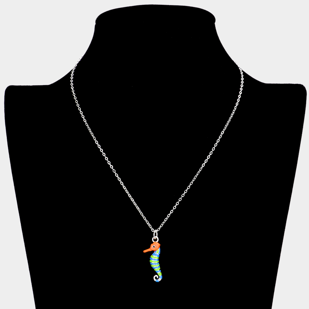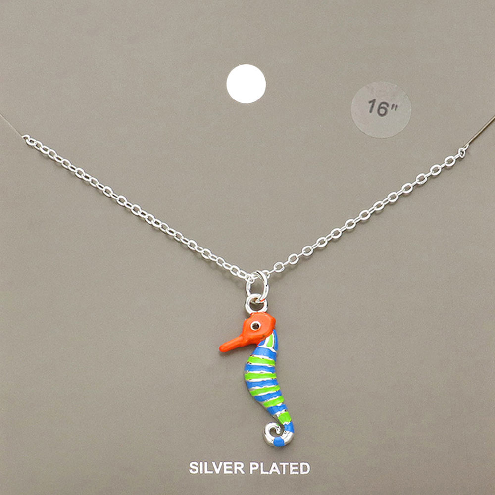 Silver Plated Enamel Metal Seahorse Pendant Necklace