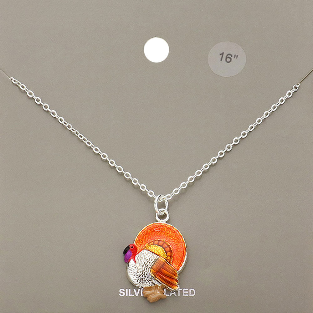Silver Plated Turkey Pendant Necklace