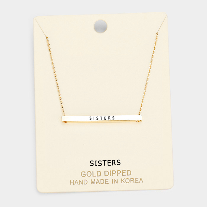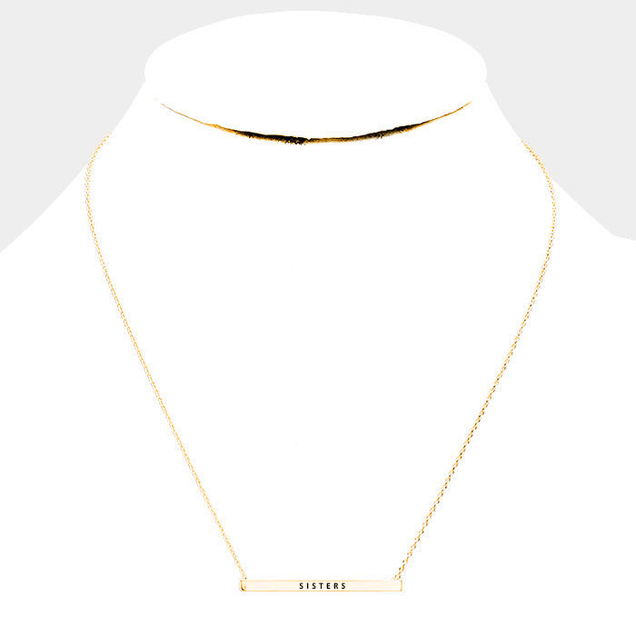 'Sisters' Horizontal Metal Bar Pendant Necklace