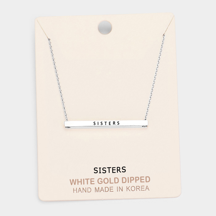 'Sisters' Horizontal Metal Bar Pendant Necklace