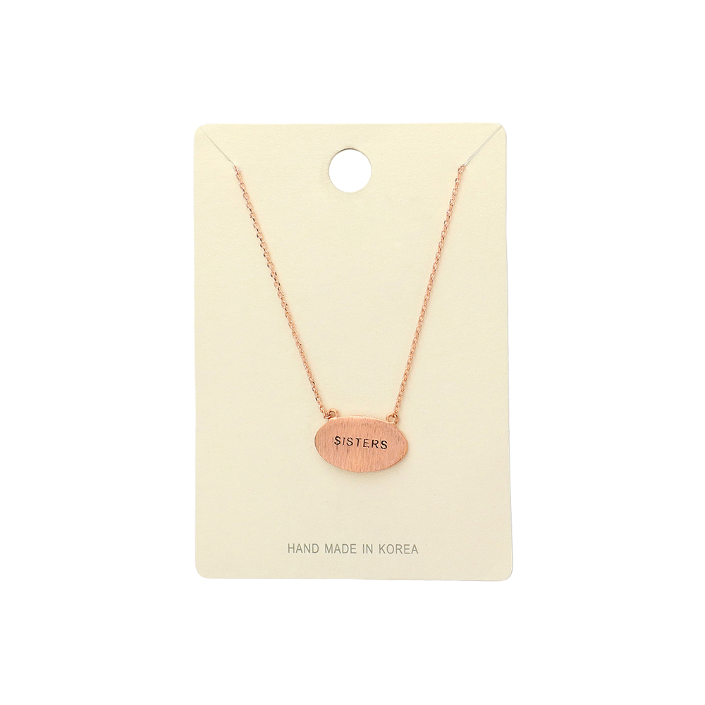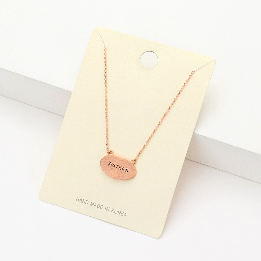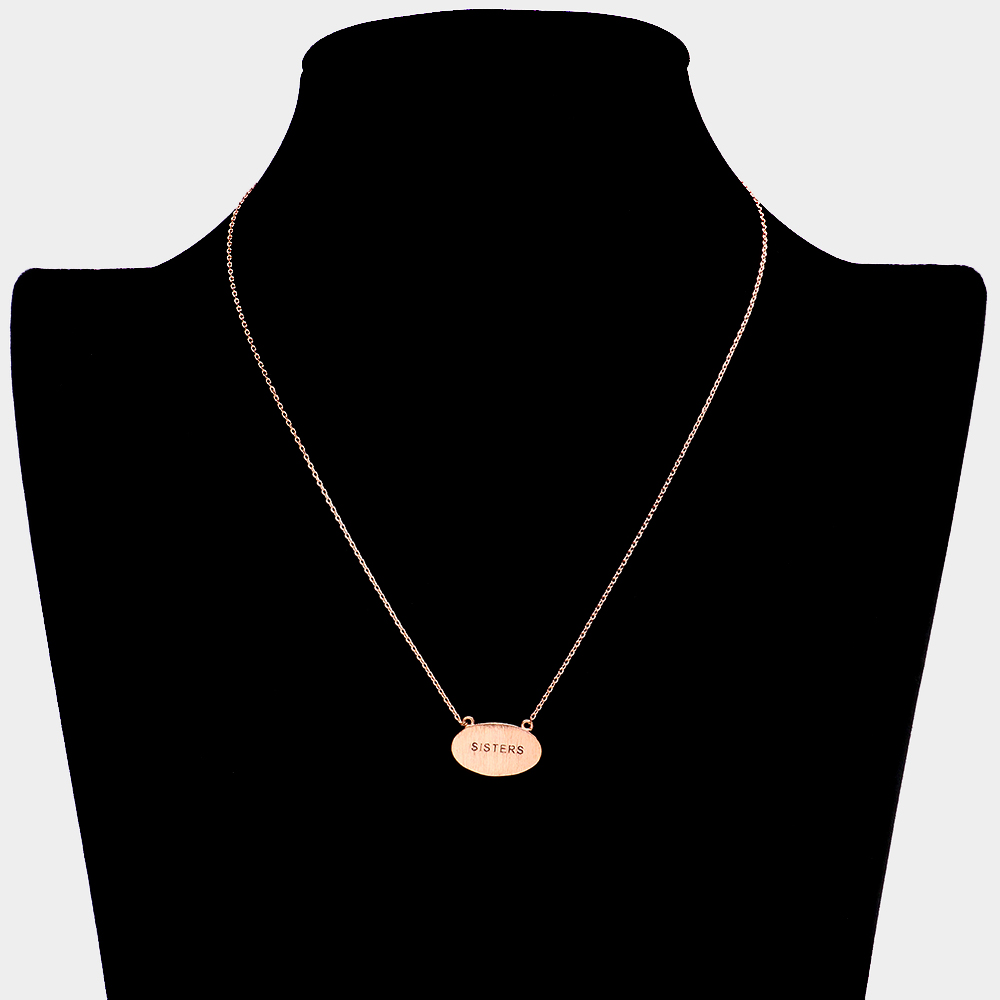 "Sisters" Message Brass Oval Metal Pendant Necklace