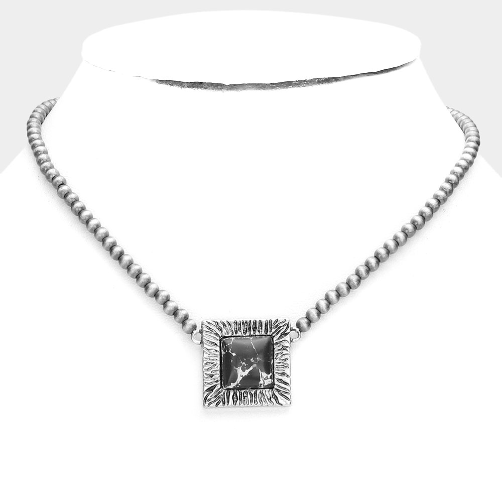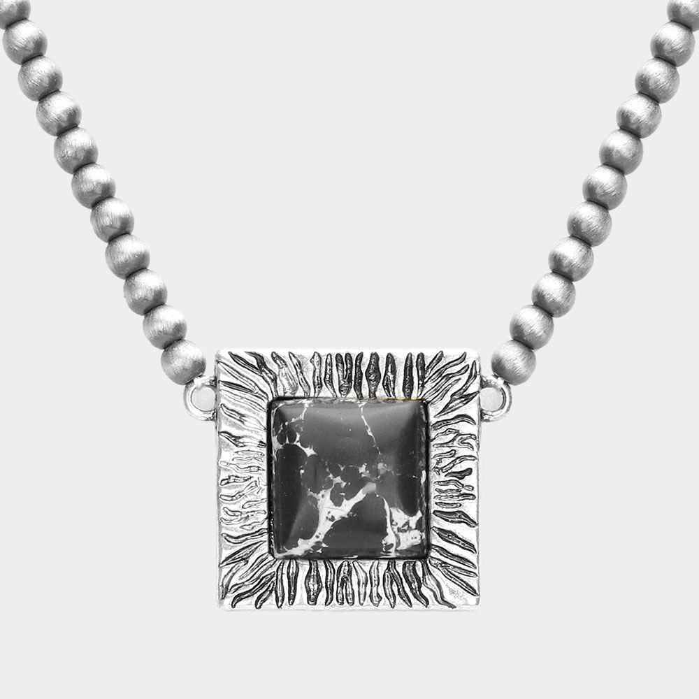 Square Natural Stone Accented Pendant Necklace