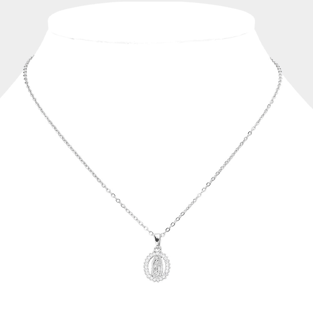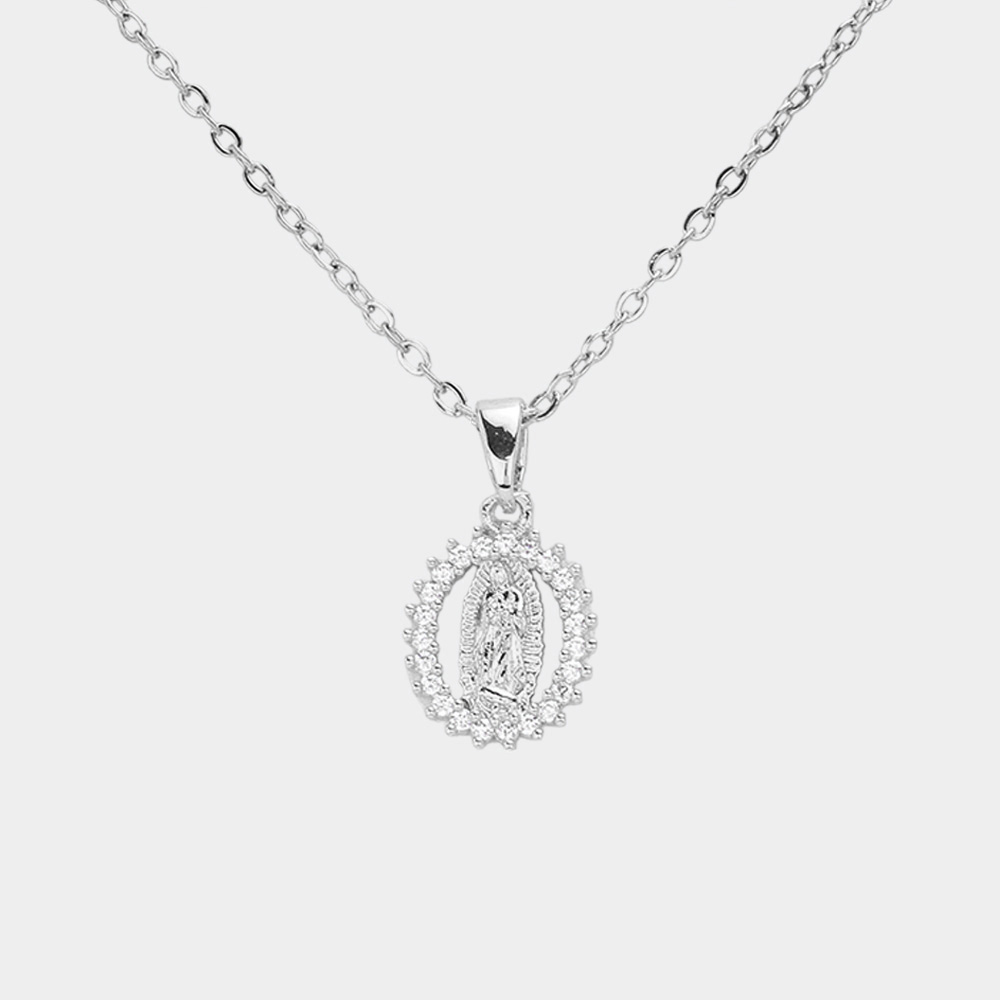 Stainless Steel CZ Stone Paved Guadalupe Pendant Necklace