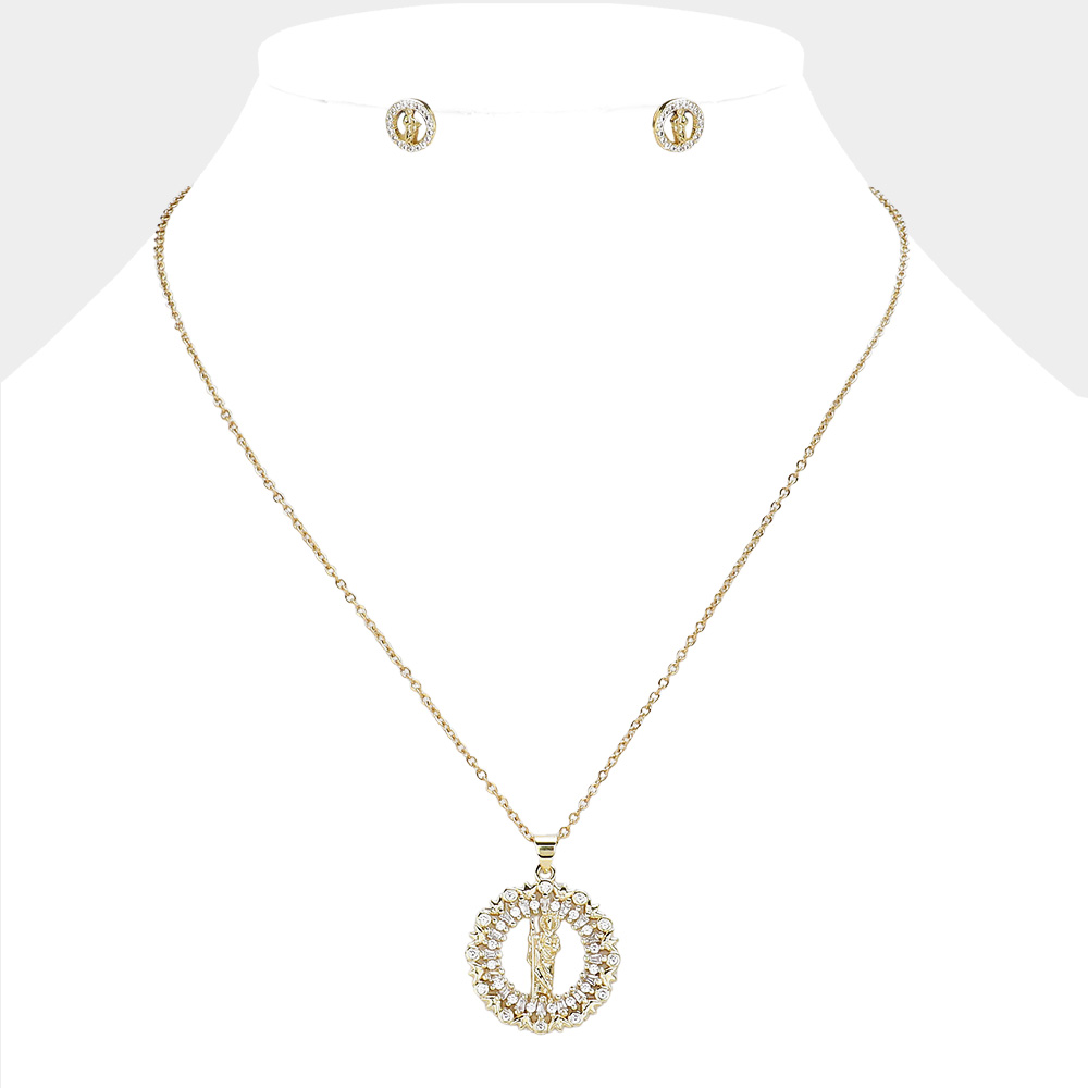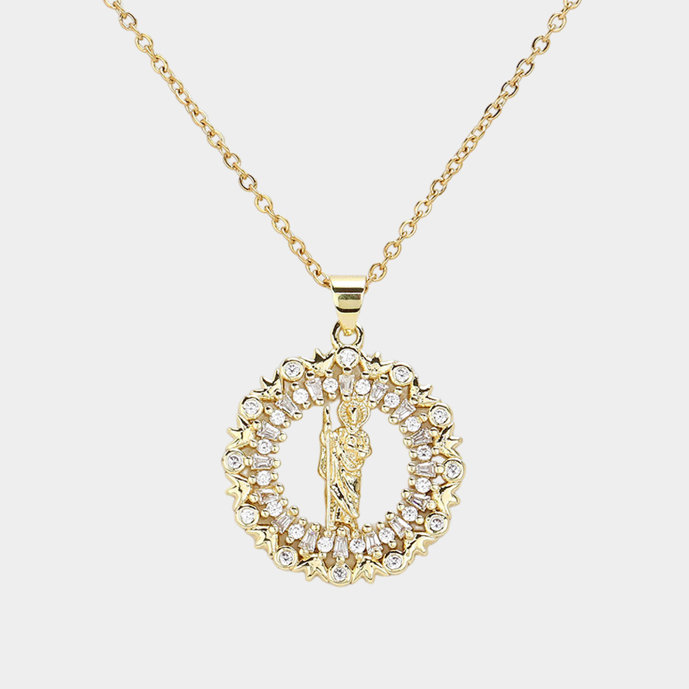 Stainless Steel CZ Stone Paved San Judas Tadeo Pendant Necklace