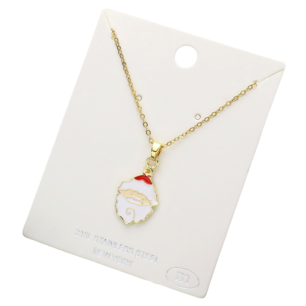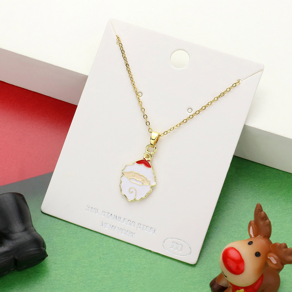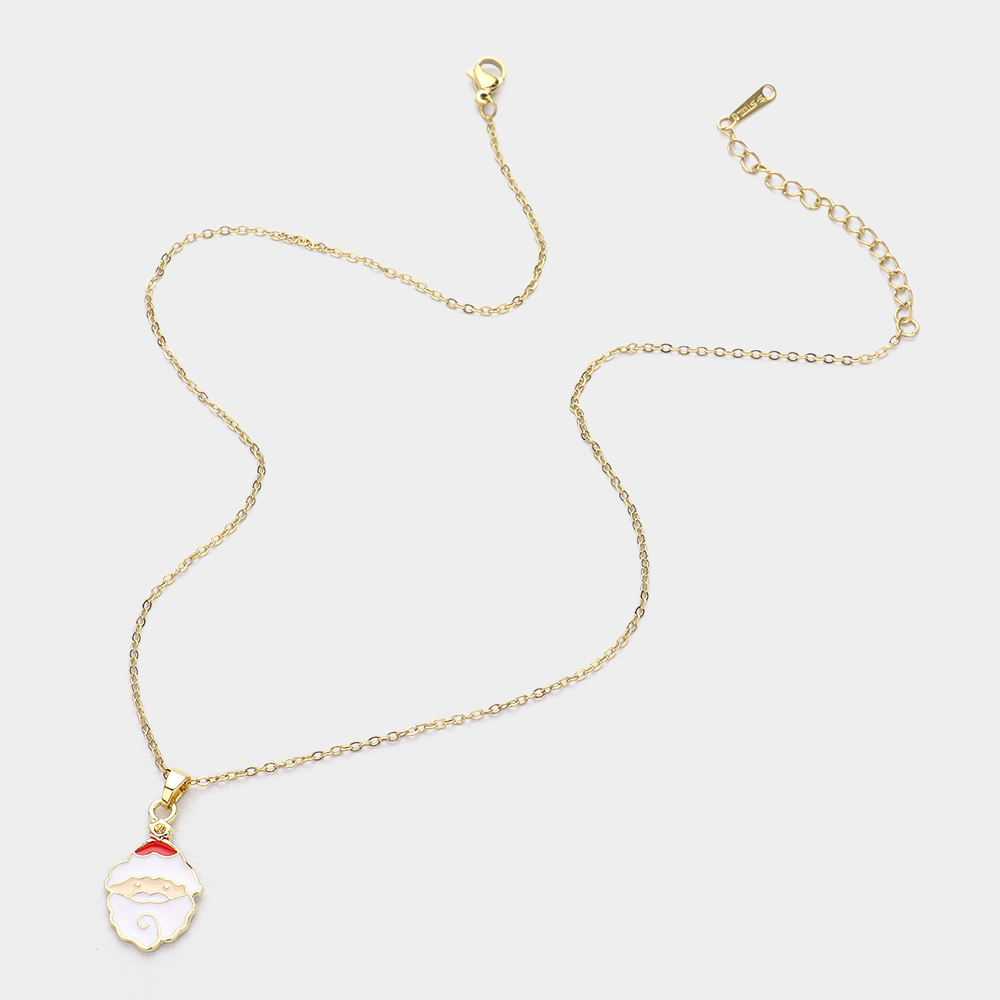 Stainless Steel Enamel Christmas Santa Pendant Necklace