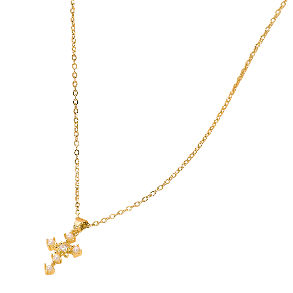 Stainless Steel Pearl Pointed Cross Pendant Necklace Stainless Steel Pearl Pointed Cross Pendant Necklace Stainless Steel Pearl Pointed Cross Pendant Necklace