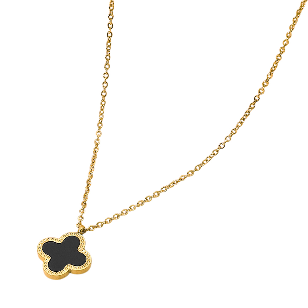 Details • Necklace Size : 16" + 1.5" L • Pendant Size : 0.6" X 0.6" • Elegant quatrefoil pendant necklace featuring a sleek chain and refined charm. A versatile accessory that adds timeless style to any outfit, from casual looks to formal occasions. Perfect as a meaningful gift or a personal staple piece, designed to bring a touch of elegance to your jewelry collection. • Stainless Steel