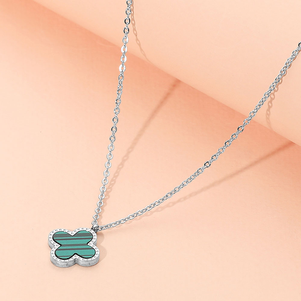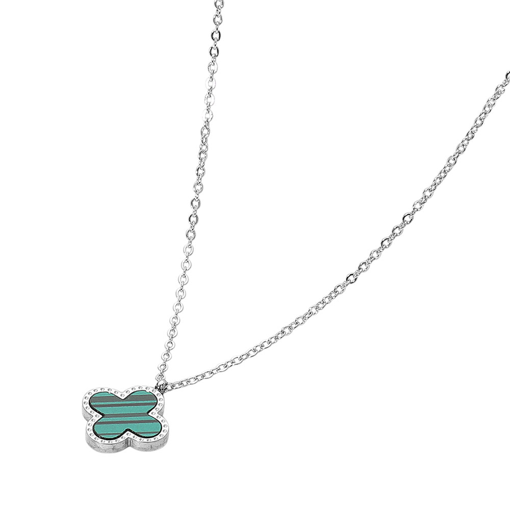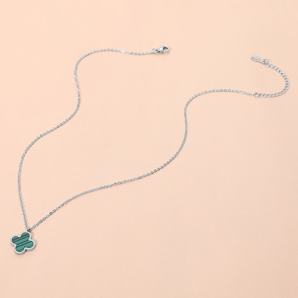 Details • Necklace Size : 16" + 1.5" L • Pendant Size : 0.6" X 0.6" • Elegant quatrefoil pendant necklace featuring a sleek chain and refined charm. A versatile accessory that adds timeless style to any outfit, from casual looks to formal occasions. Perfect as a meaningful gift or a personal staple piece, designed to bring a touch of elegance to your jewelry collection. • Stainless Steel