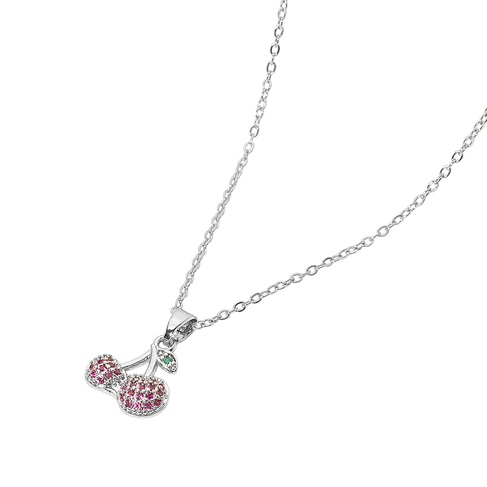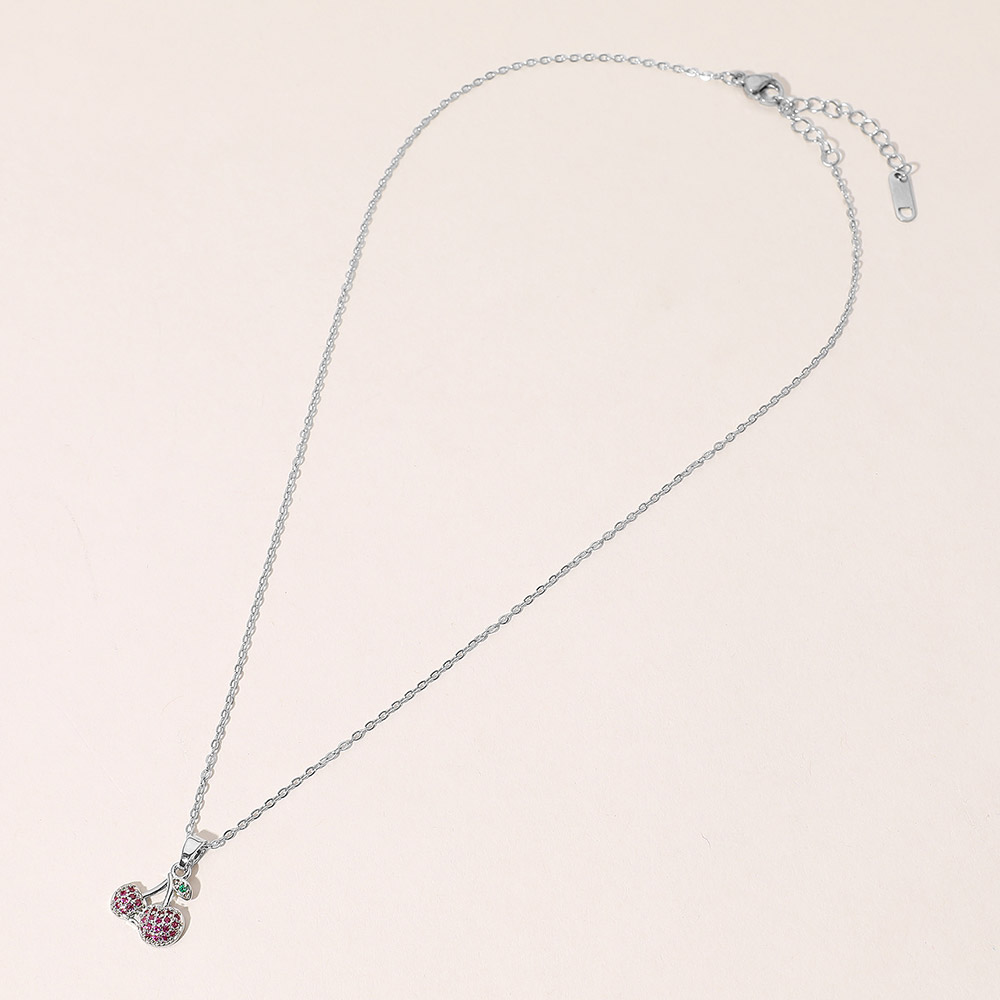 Stainless Steel Stone Paved Cherry Pendant Necklace