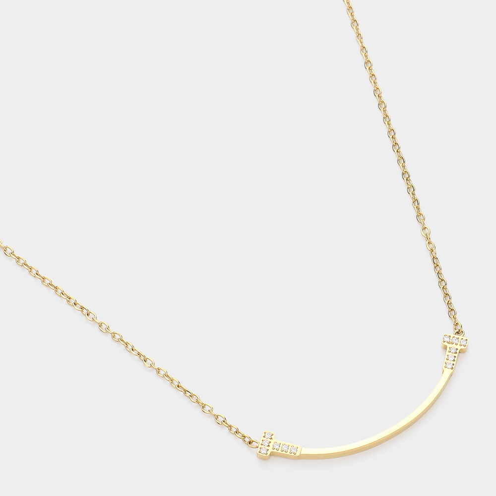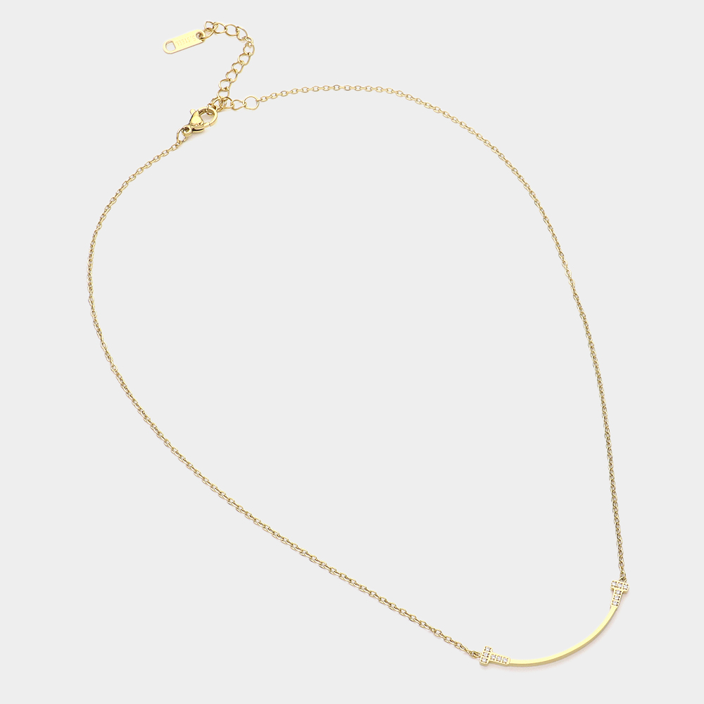 Stainless Steel Stone Paved Smile Pendant Necklace