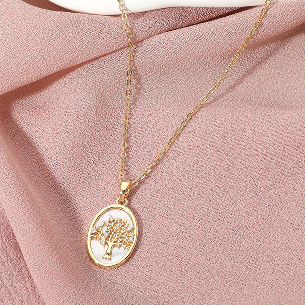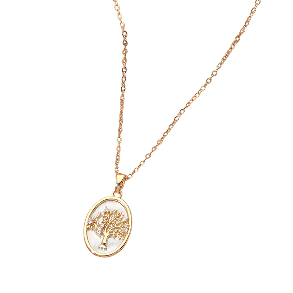Gold Dipped CZ Pave Tree of Life Pendant Necklace