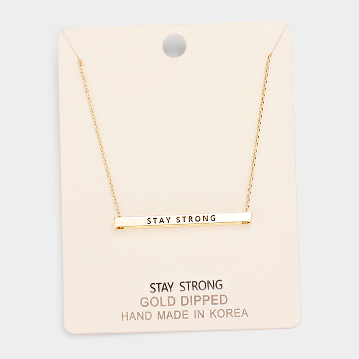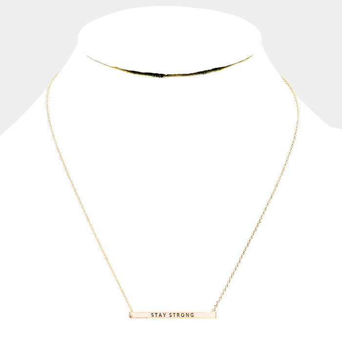 'Stay Strong' Horizontal Metal Bar Pendant Necklace