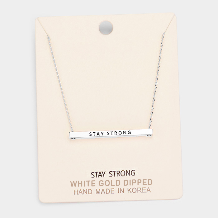 'Stay Strong' Horizontal Metal Bar Pendant Necklace