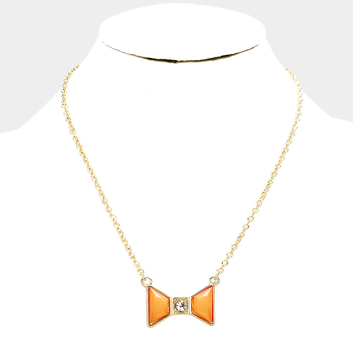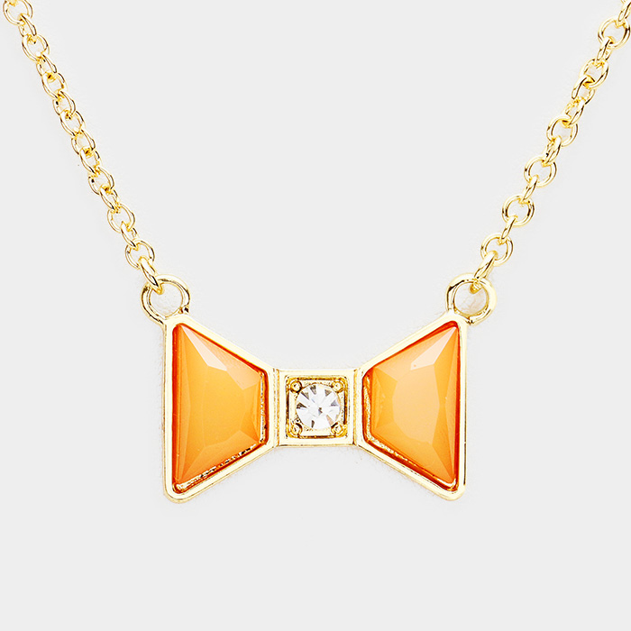 Stone Bow Pendant Necklace