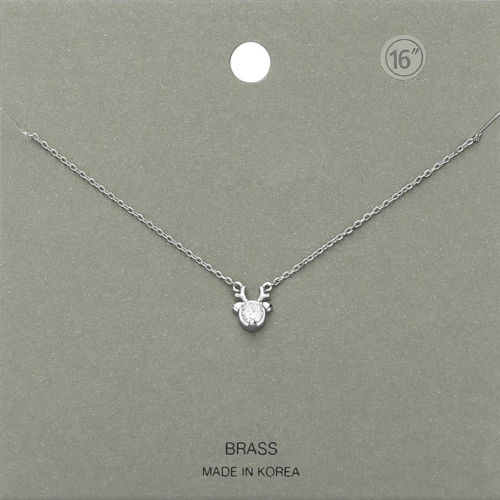 Stone Brass Metal Rudolph Pendant Necklace