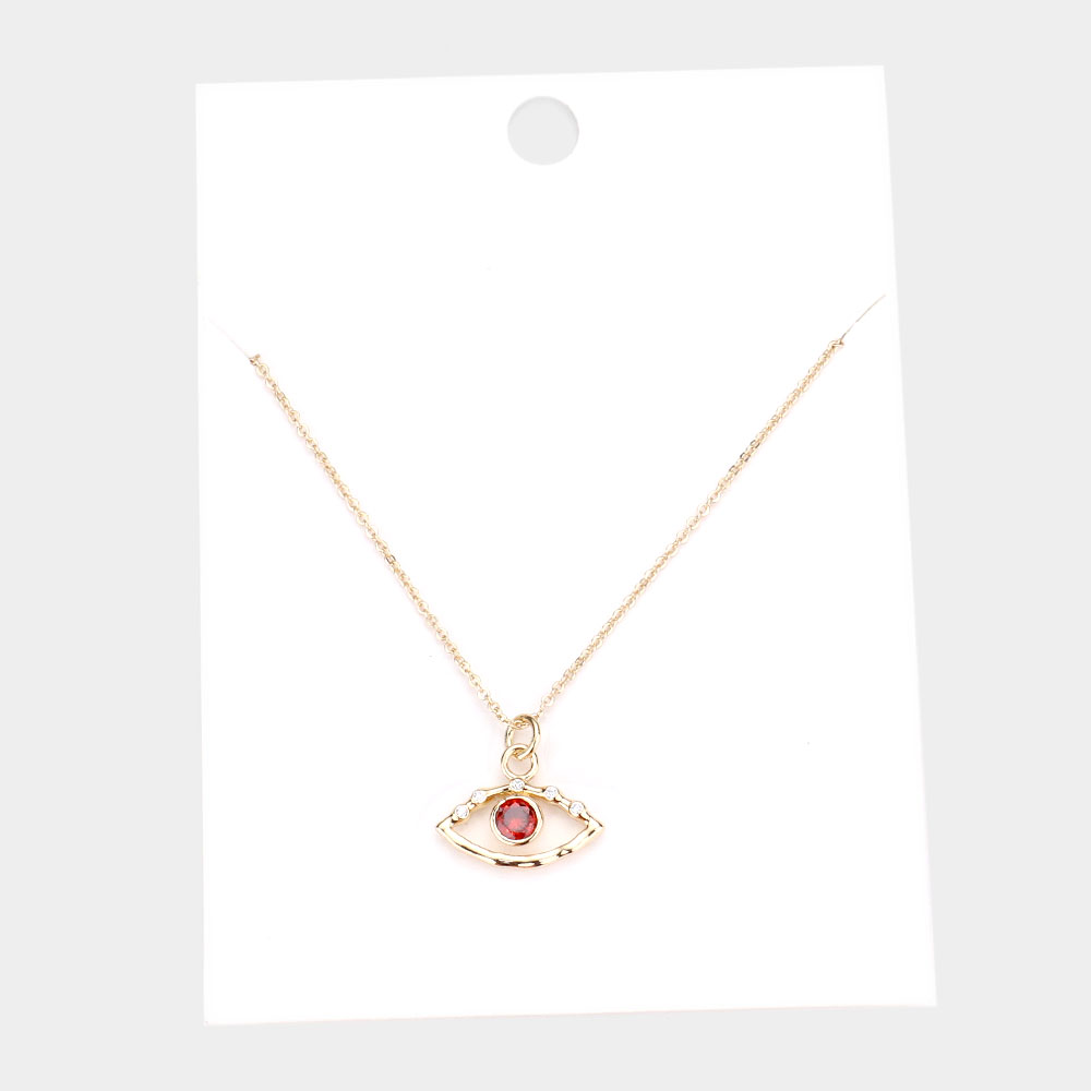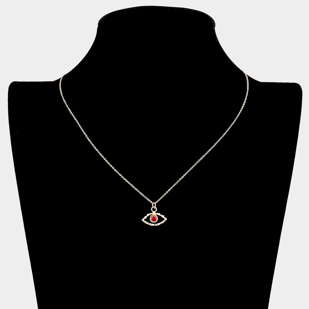 Stone Centered Brass Metal Evil Eye Pendant Necklace