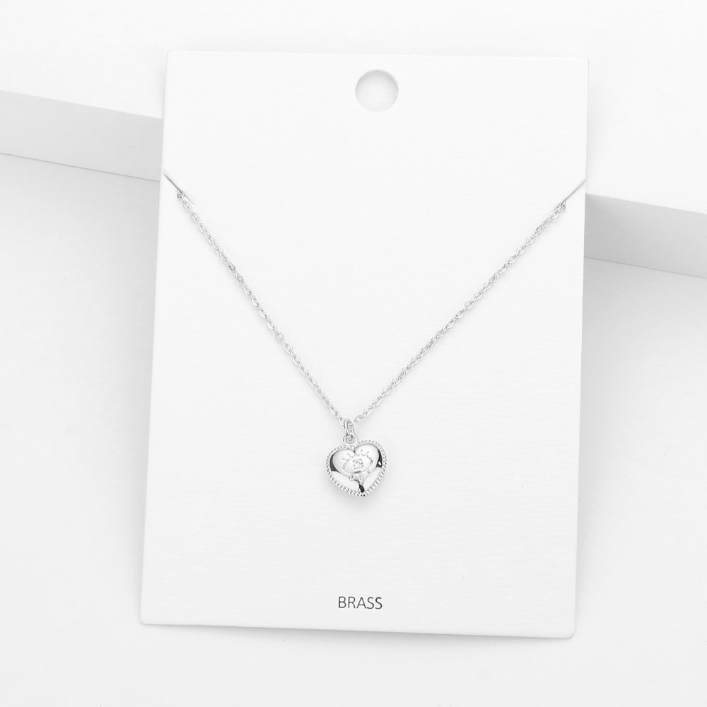 Stone Centered Evil Eye Detailed Brass Metal Heart Pendant Necklace