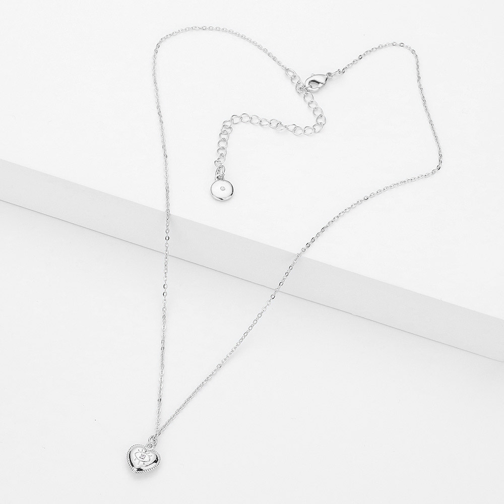 Rhinestone Embellished Metal Round Rectangle Evil Eye Accented Heart Pendant Necklace