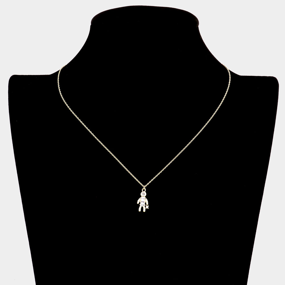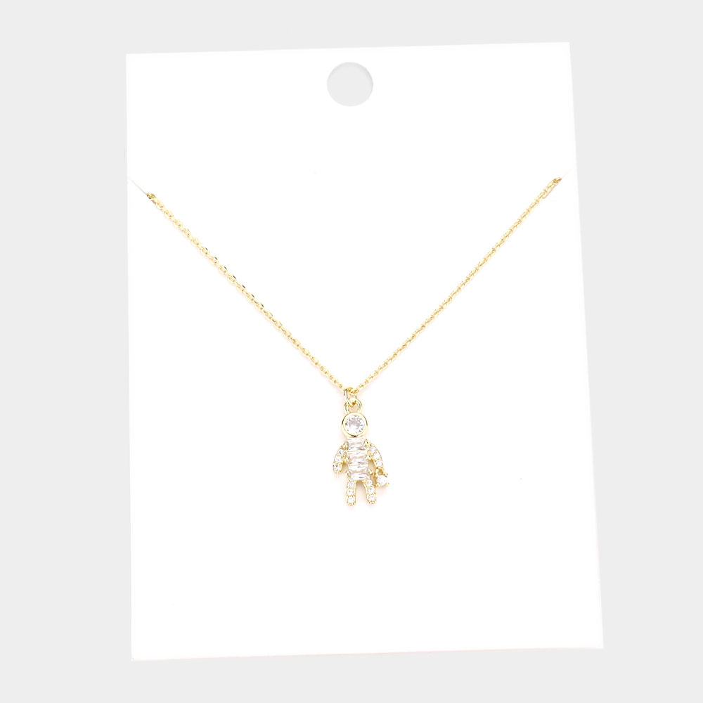 Stone Embellished Brass Metal Human Being Pendant Necklace