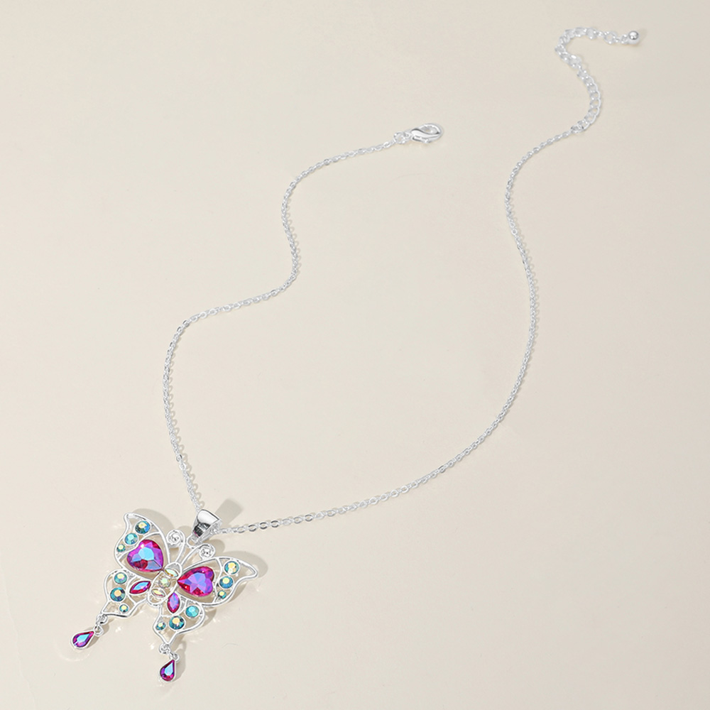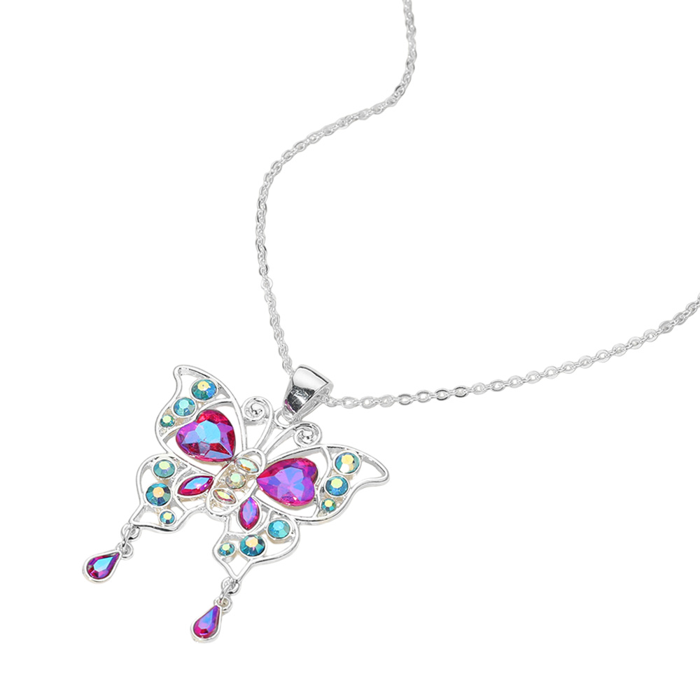 Stone Embellished Butterfly Pendant Necklace
