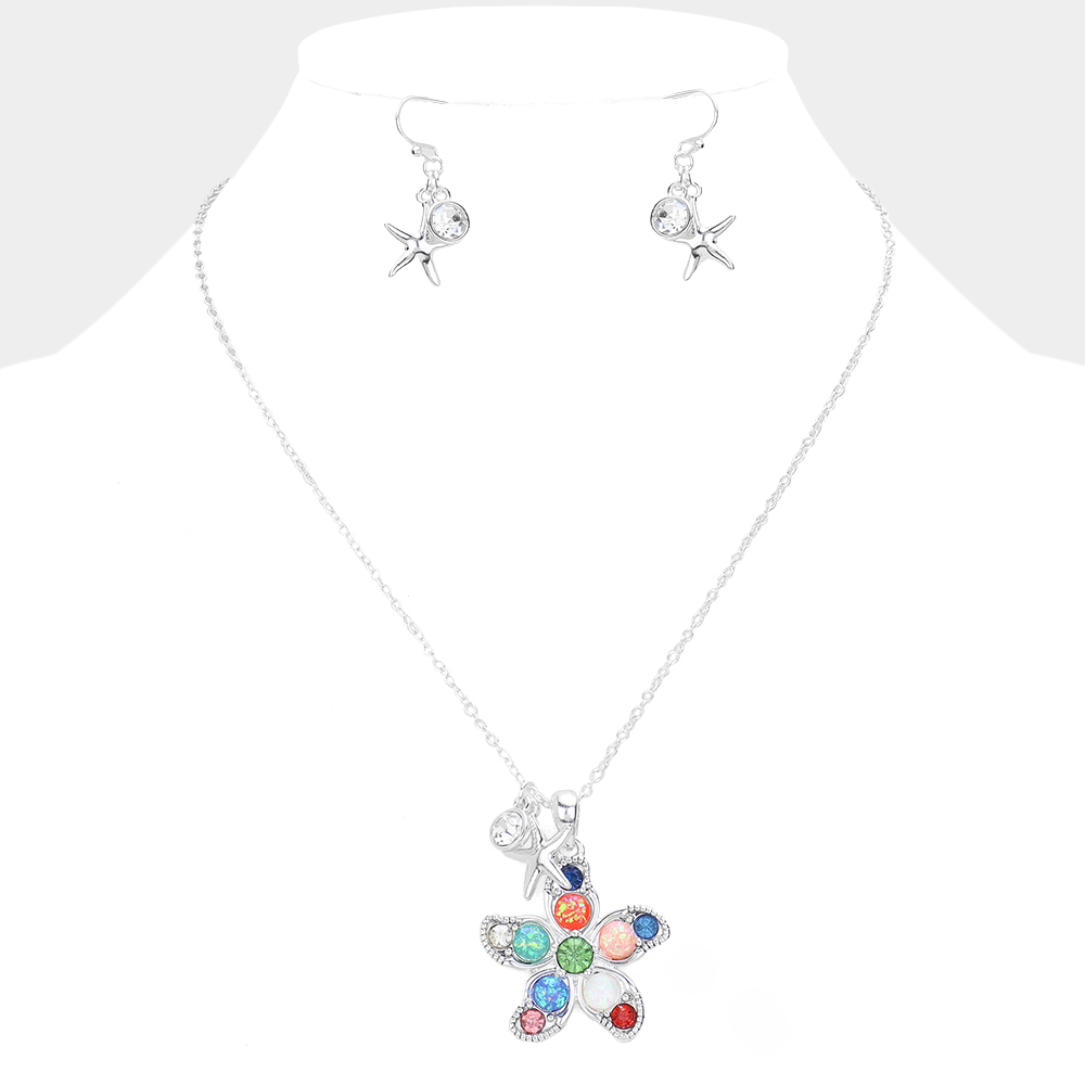 Stone Embellished Starfish Pendant Necklace
