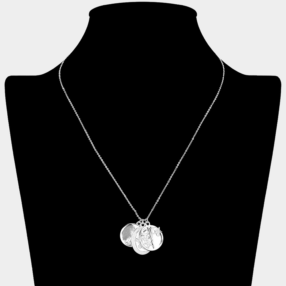 Stone Paved Butterfly Flower Pointed Disc Charm Pendant Necklace
