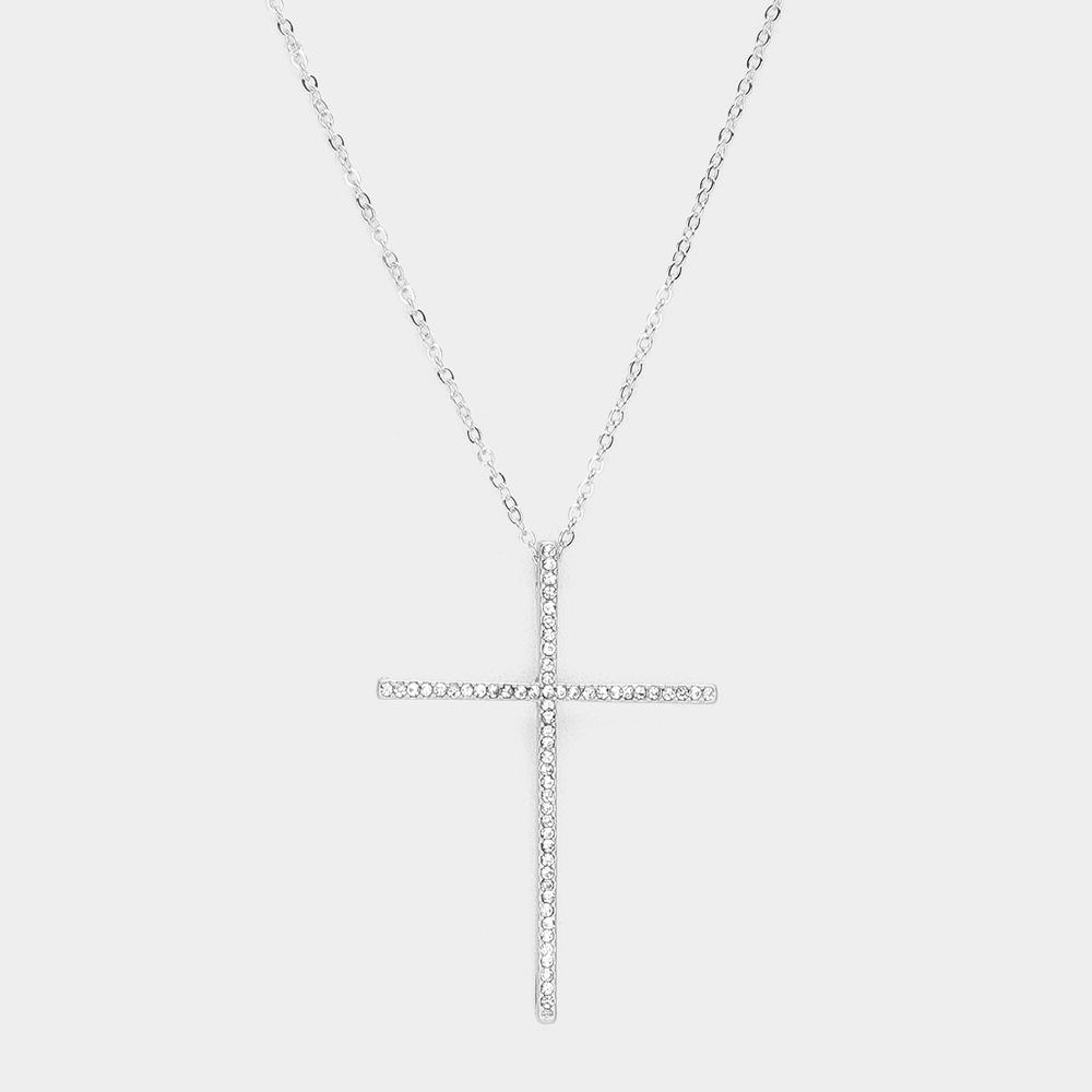 Stainless Steel Stone Paved Cross Pendant Pointed Stretch Bracelet