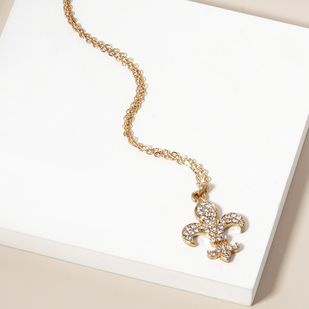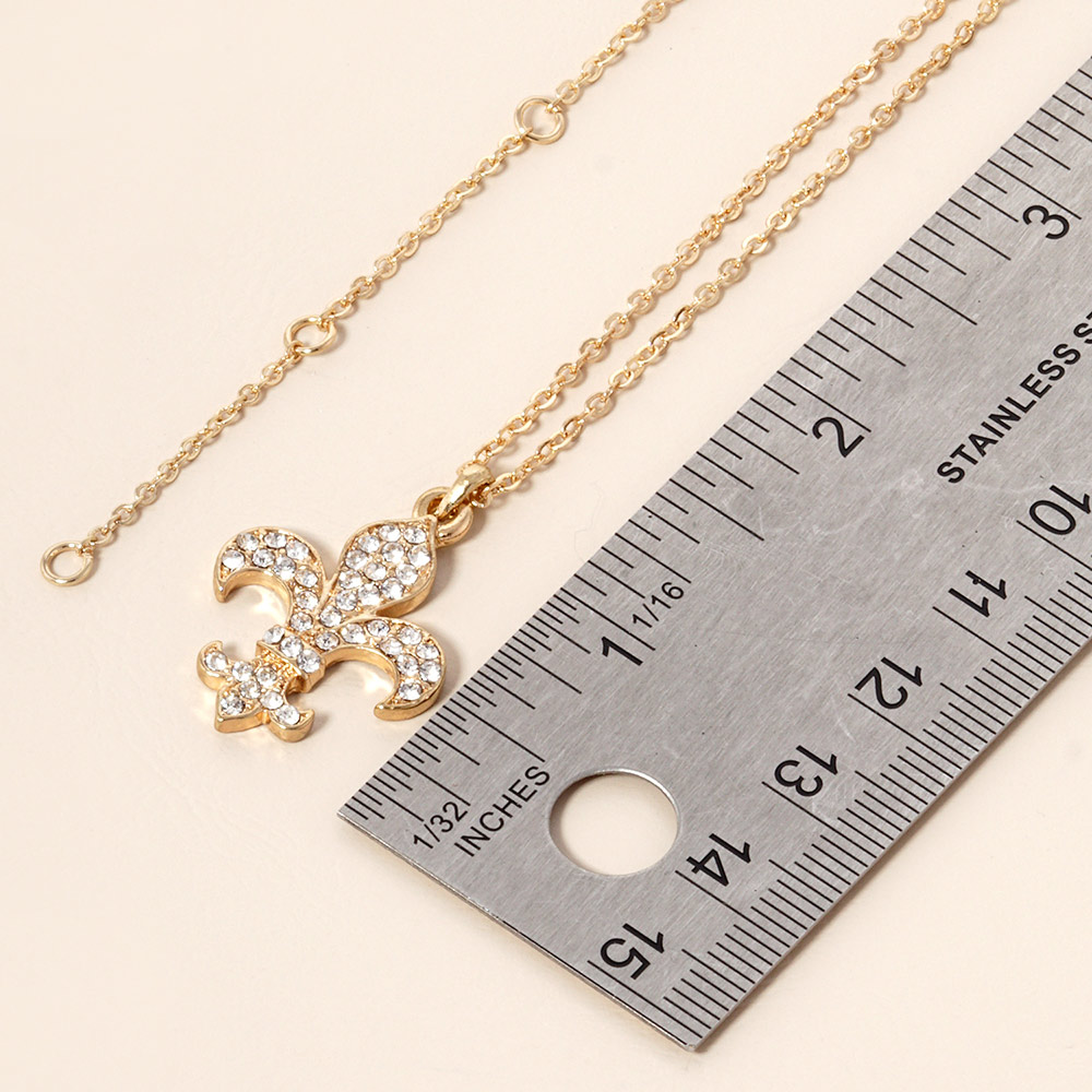 Rhinestone Embellished Fleur de Lis Pendant Necklace