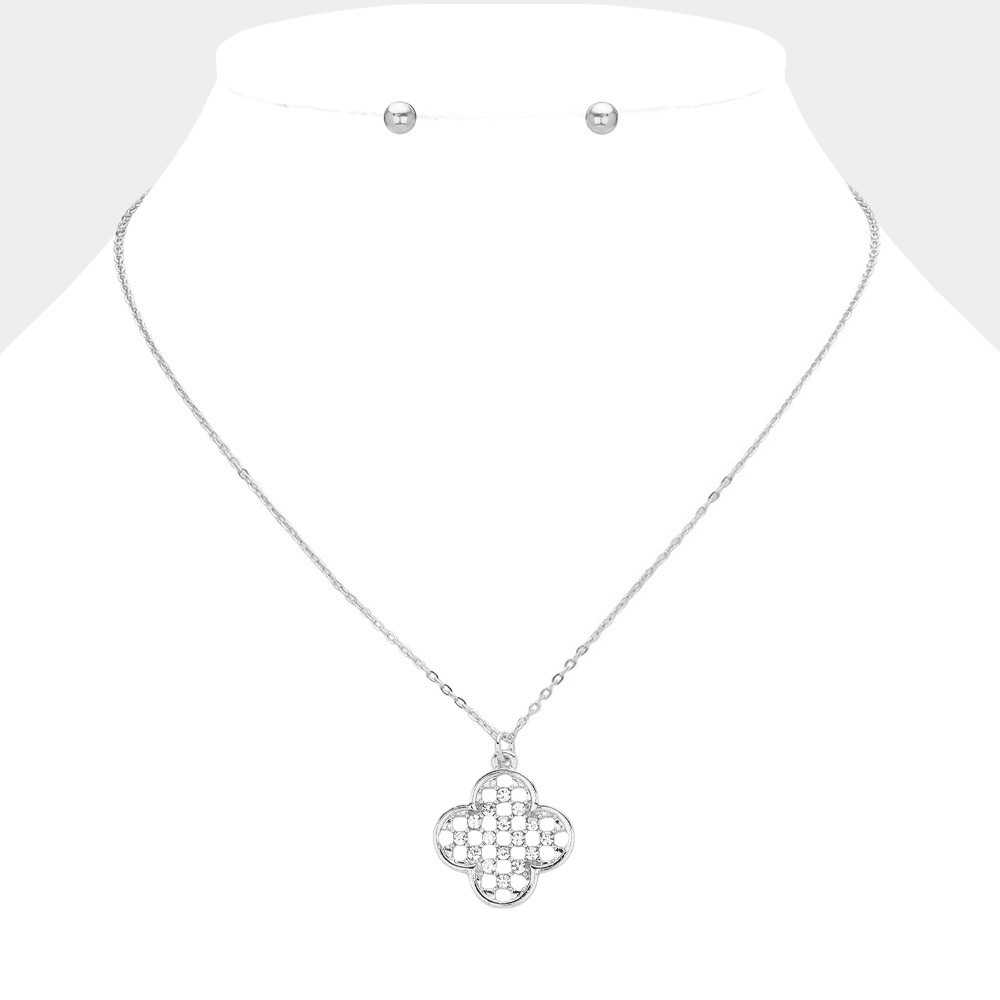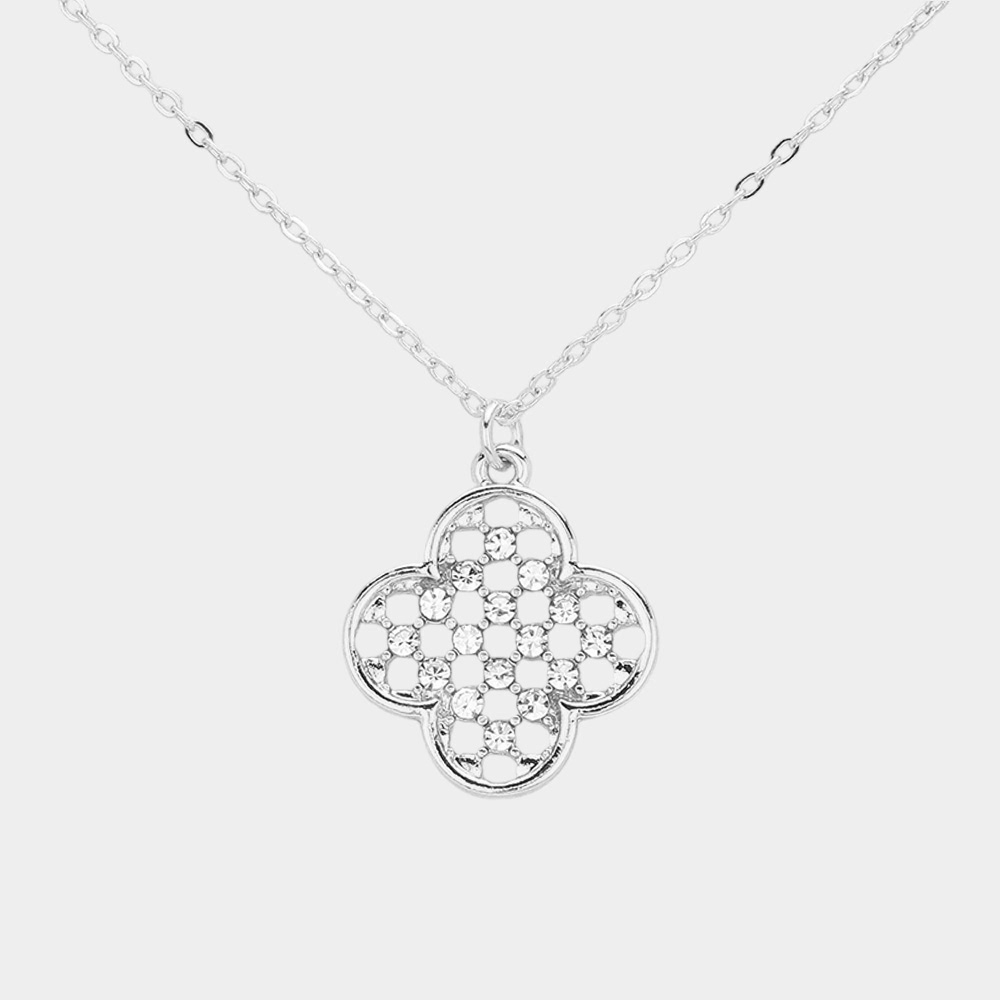 White Gold Dipped Mother of Pearl Quatrefoil Station Necklace