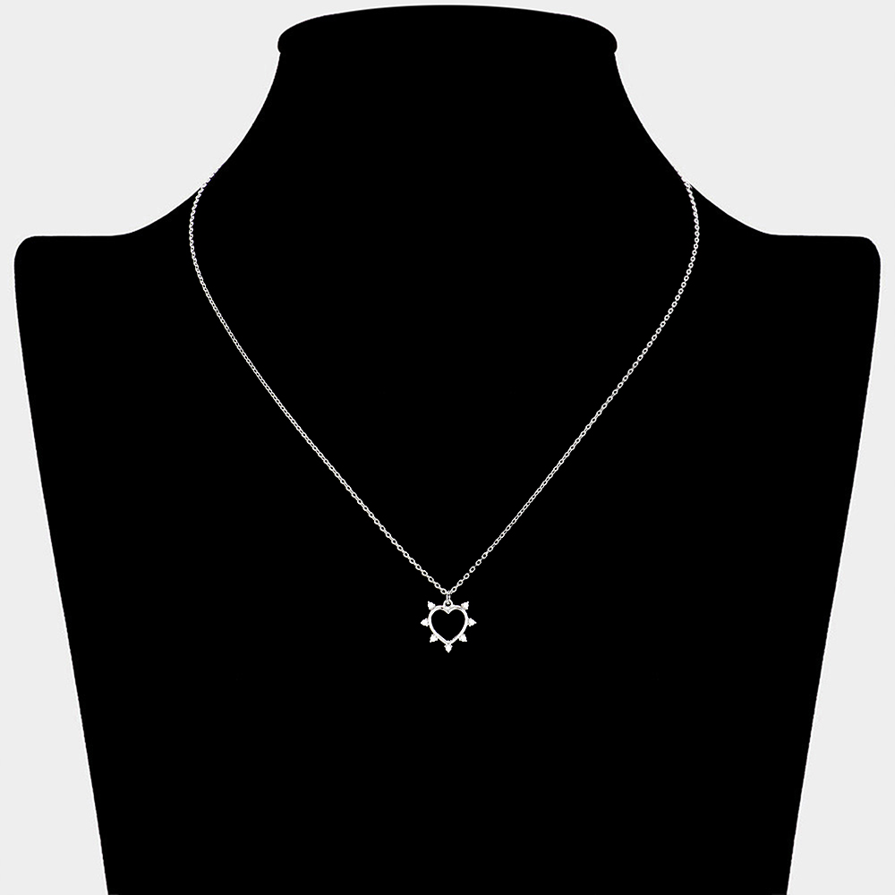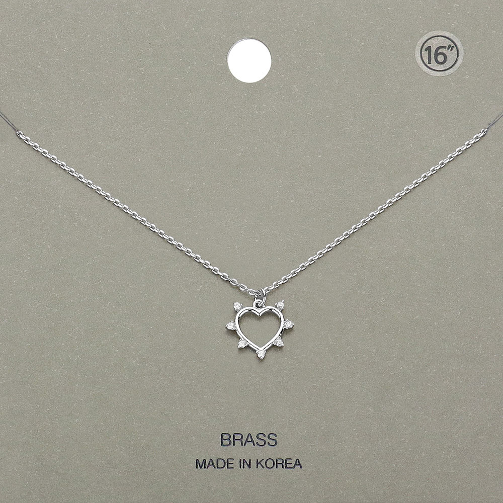 Stone Trim Brass Metal Open Heart Pendant Necklace