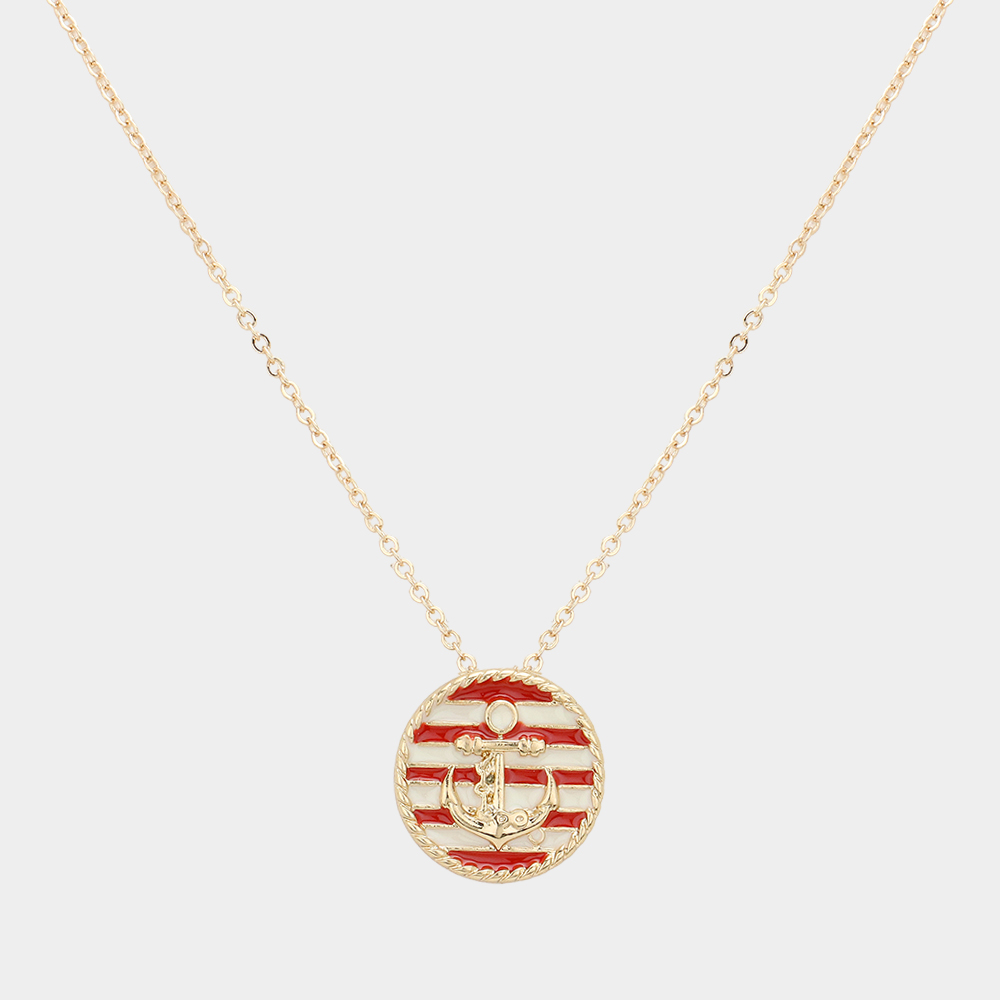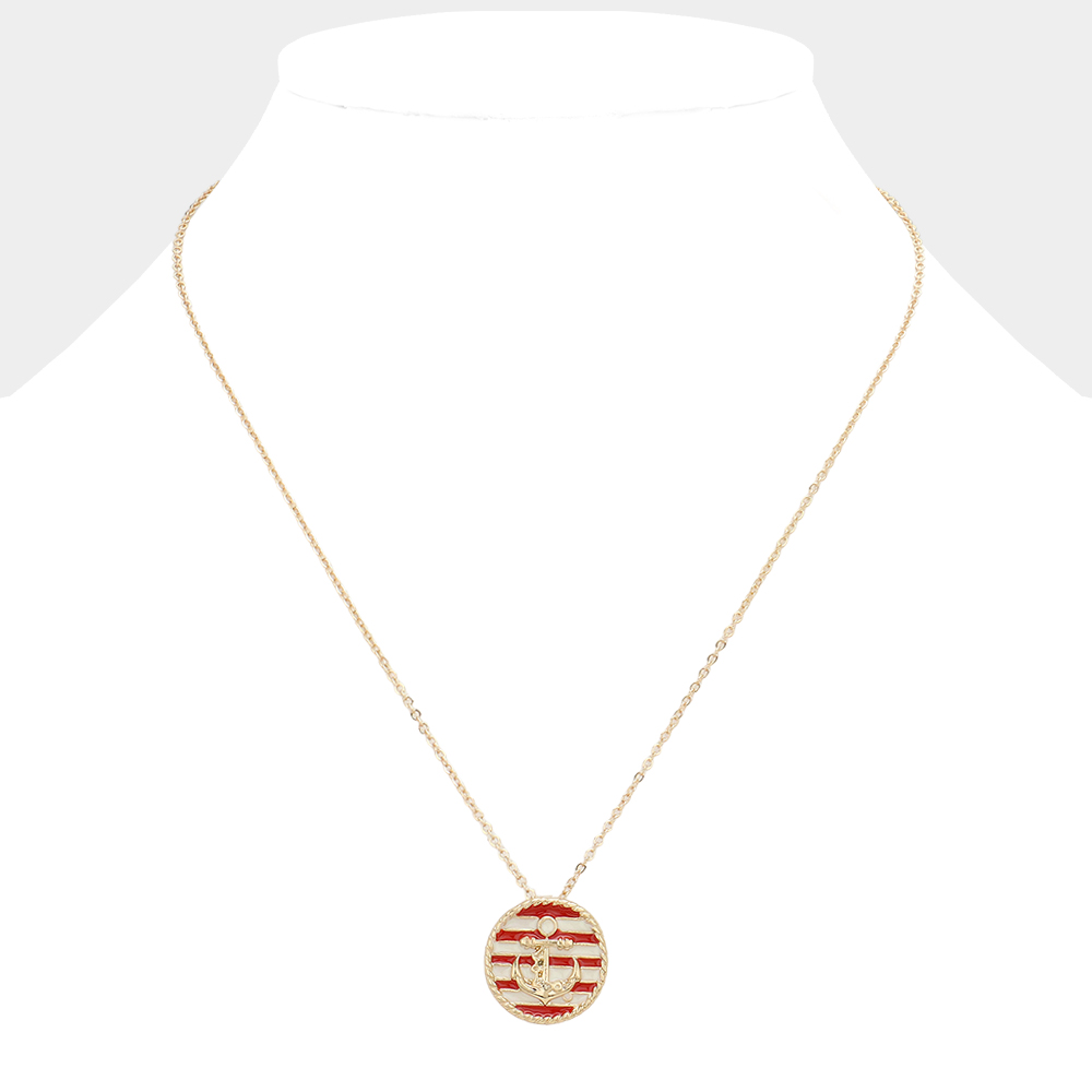 Striped Lacquered Enamel Anchor Disc Pendant Necklace