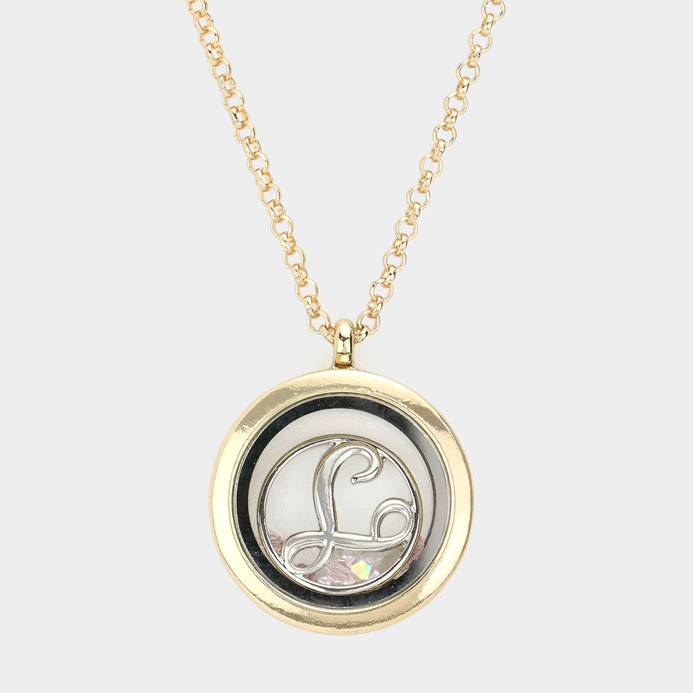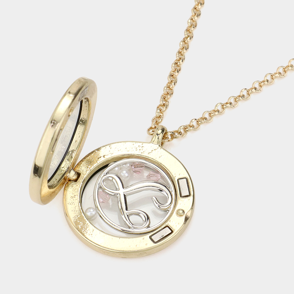 'T' Initial Monogram Floating Locket Pendant Necklace