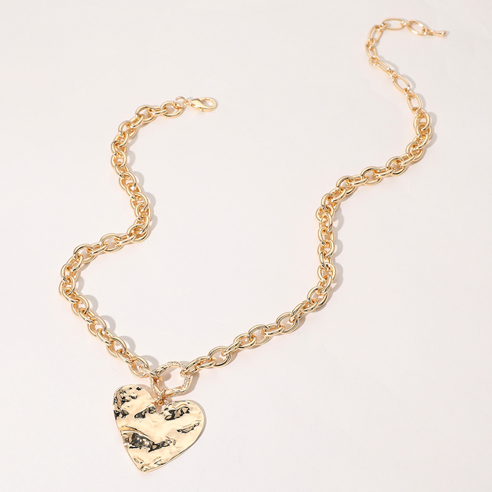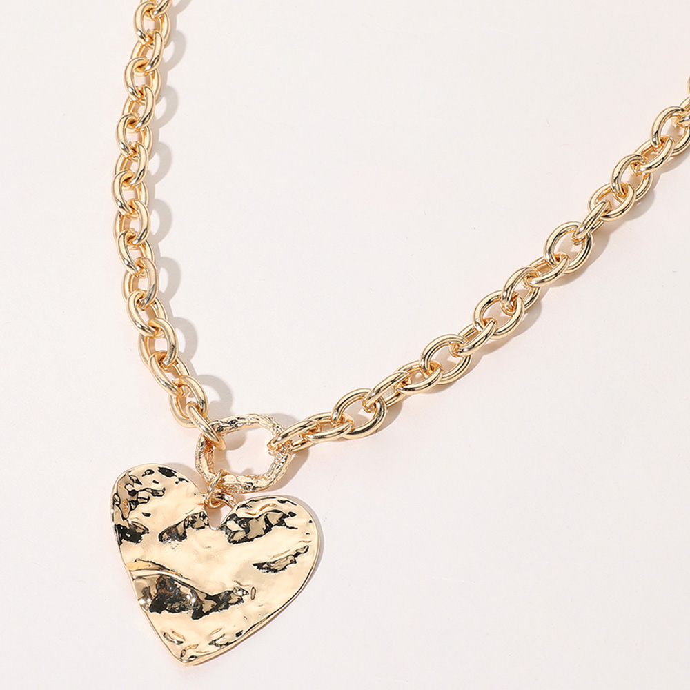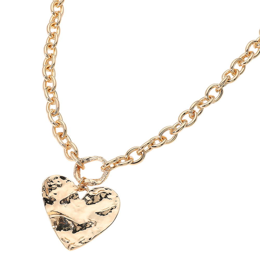 Details • Necklace Size : 16.5" + 3.75" L • Pendant Size : 1.4" X 1.8" • Discover the textured heart pendant chain necklace, a bold accessory with a romantic touch. Its chunky chain and hammered heart charm create a chic, eye-catching style perfect for layering or wearing solo. Add a modern statement piece to your everyday or evening look. • Lead and Nickel Compliant