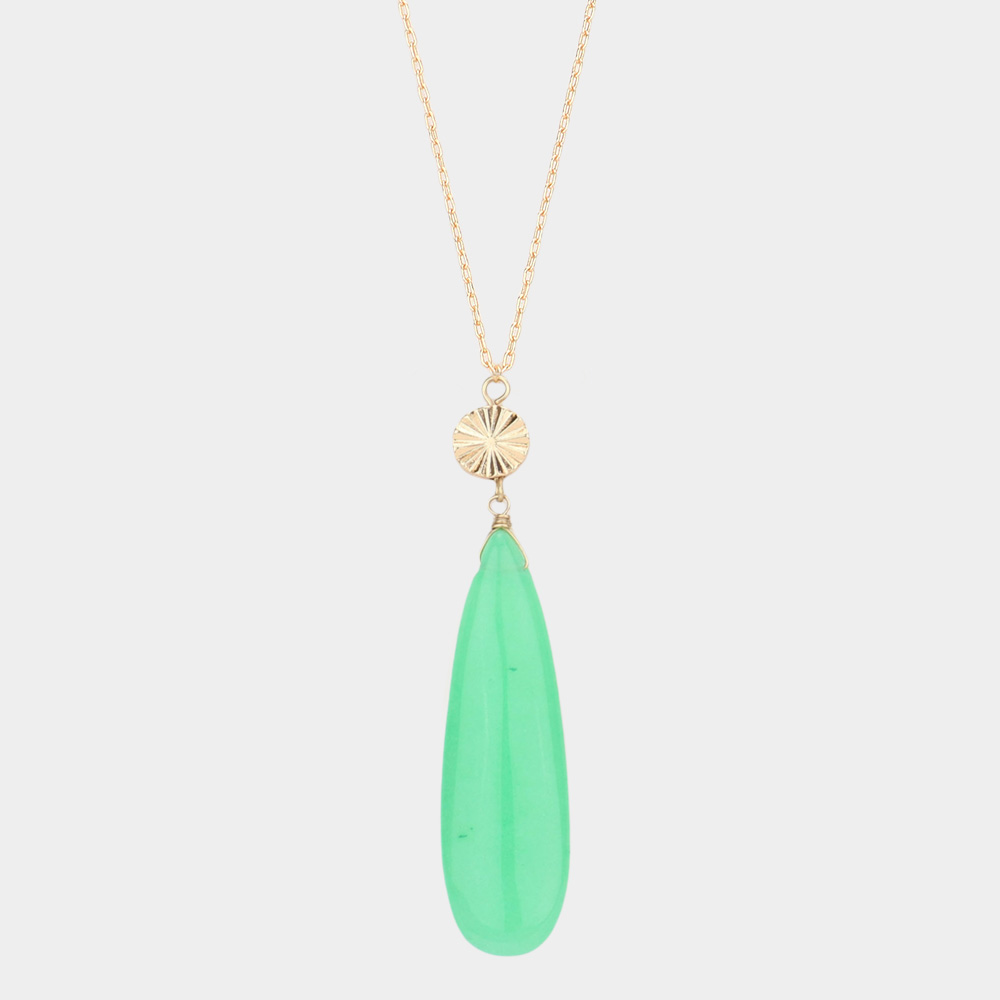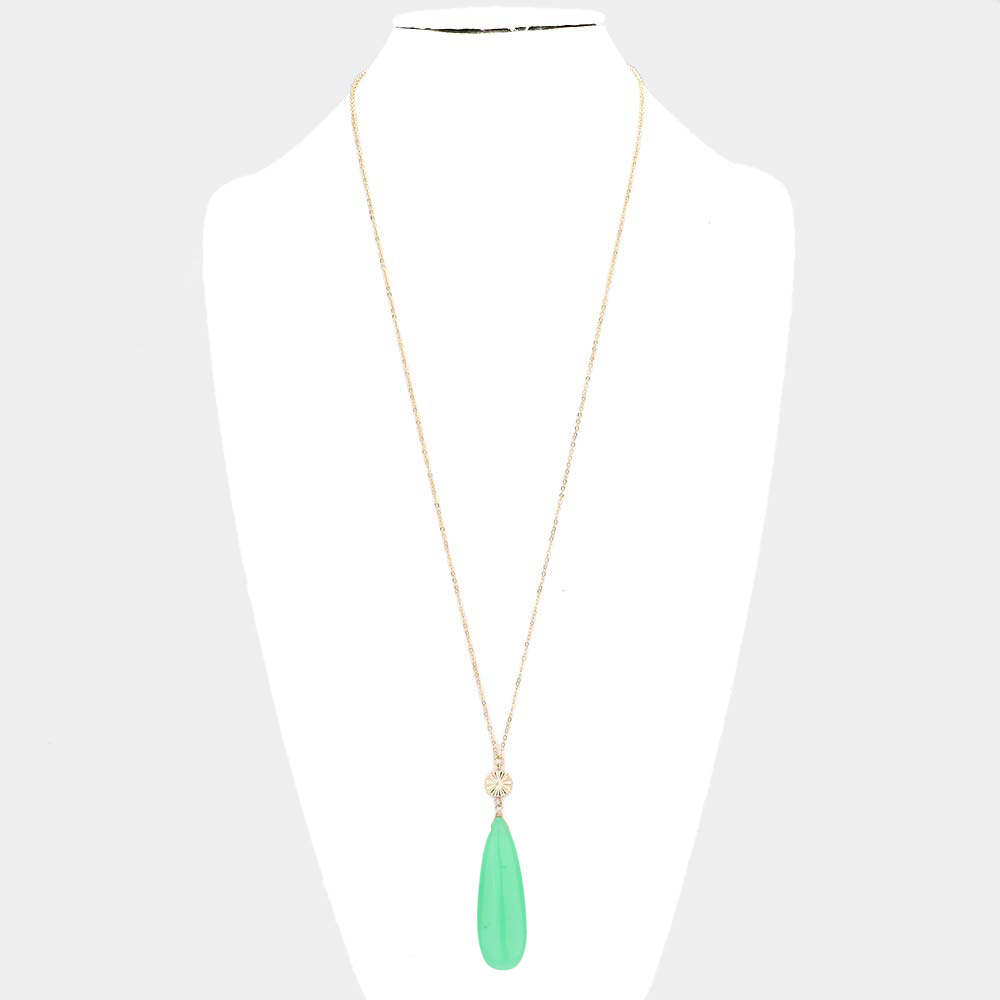 Textured Metal Round Natural Stone Teardrop Link Pendant Long Necklace