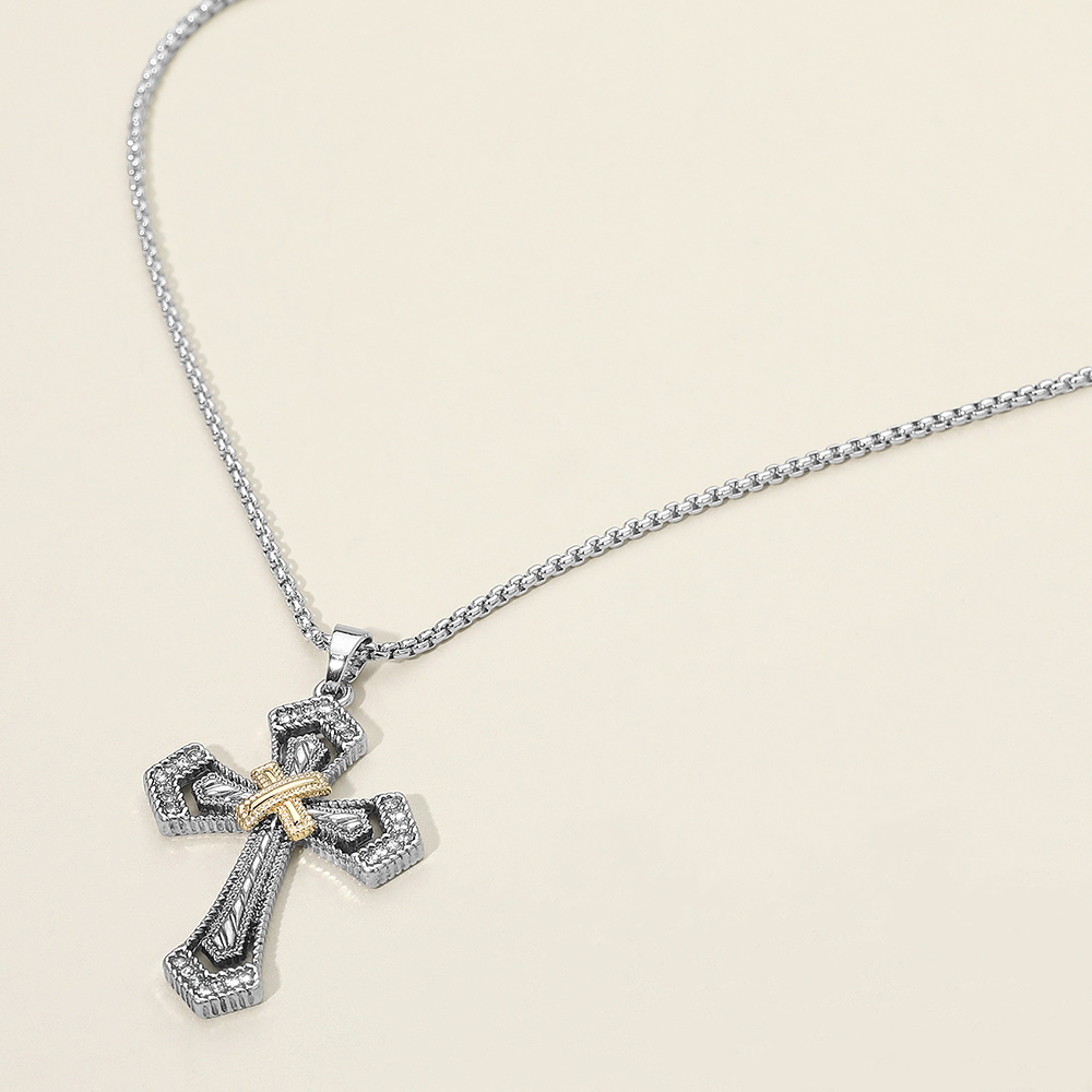 Details • Necklace Size : 17.75" + 3" L • Pendant Size : 1.2" X 1.9" • A bold cross pendant featuring intricate detailing paired with a sleek chain for a refined statement look. Perfect for everyday wear or heartfelt gifting, offering timeless appeal that layers beautifully or stands out worn alone. • Lead and Nickel Compliant